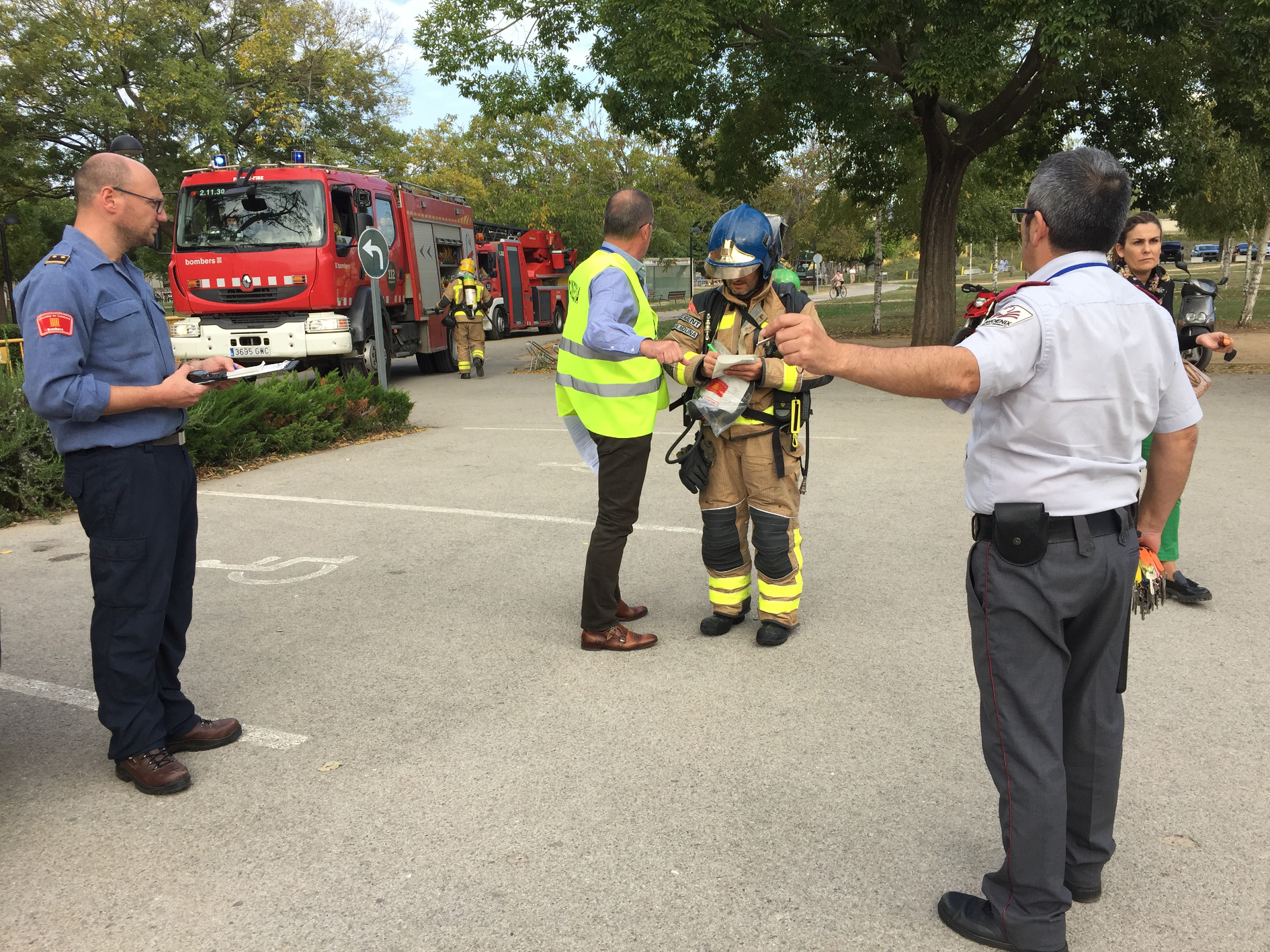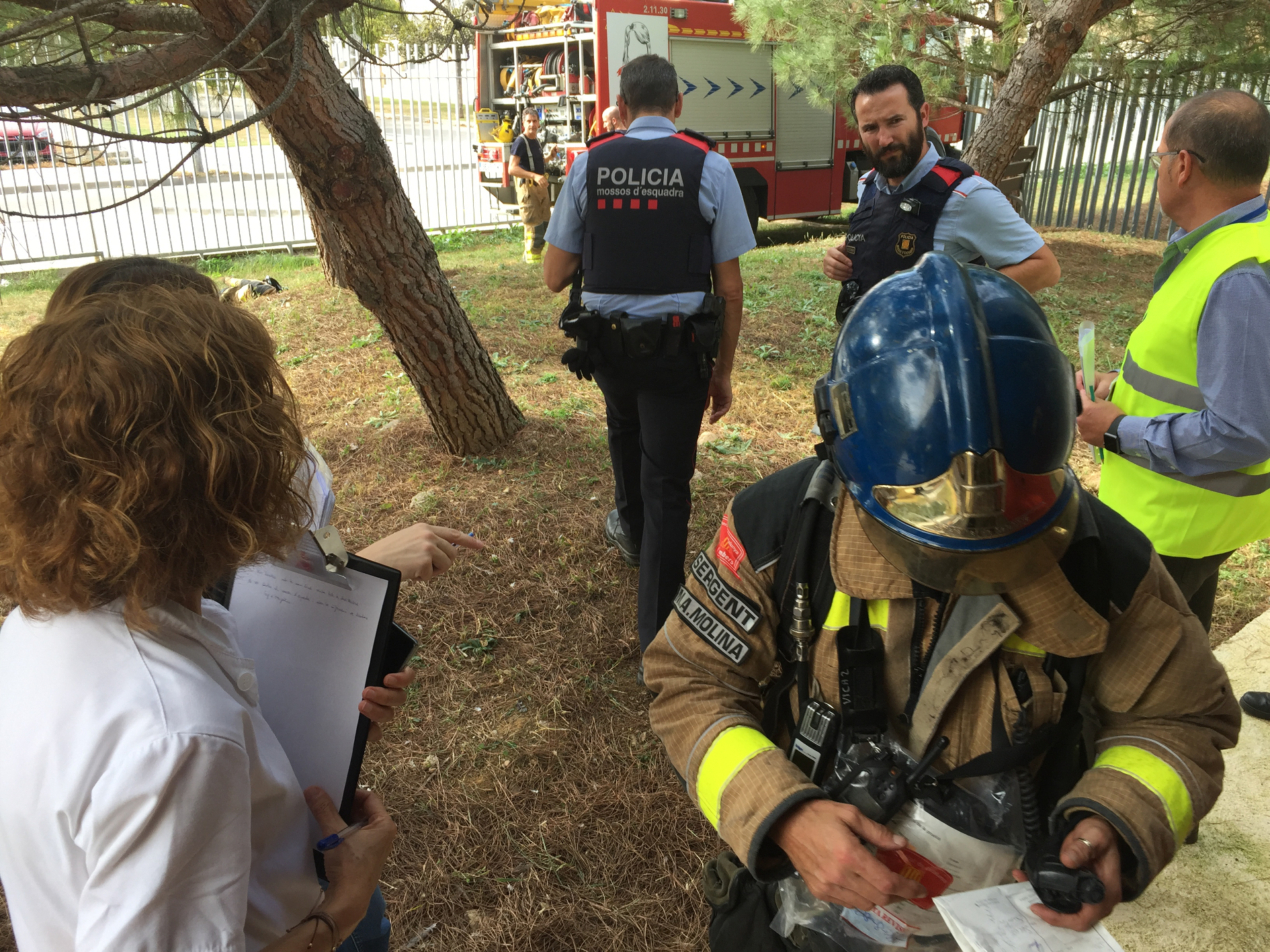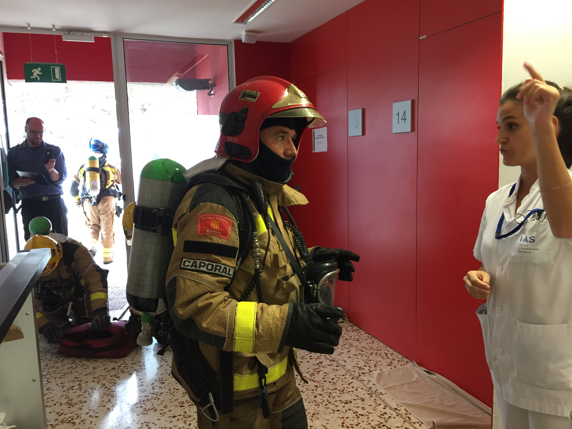 En arribar al lloc, els Bombers de la Generalitat han assumit la coordinació de l'emergència amb el personal del centre i els altres cossos de seguretat que s’han desplaçat al lloc dels fets. A l’exercici han participat 5 dotacions dels Bombers de la Generalitat: 3 vehicles d’aigua, 1 autoescala i 1 comandament, que han extingit l’incendi iniciat en una habitació i han realitzat taques de ventilació i revisió pel retorn de l'activitat al centre.