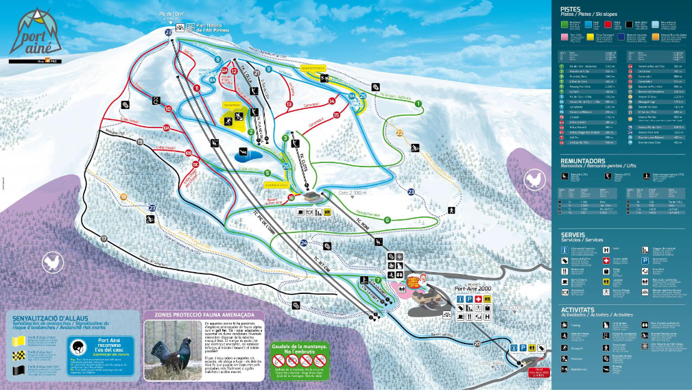 El Parc Natural de l’Alt Pirineu ha impulsat, conjuntament amb el Servei de Fauna i Flora del Departament de Territori i Sostenibilitat, en col·laboració amb Ferrocarrils de la Generalitat de Catalunya (FGC), com a gestor de les estacions de muntanya d’Espot i Port Ainé, una iniciativa pionera a Catalunya en protecció de fauna amenaçada vinculada a activitats d’hivern a les estacions d’esquí de muntanya. Així, ha editat una nova cartografia d’aquestes estacions destinada als amants dels esports d’hivern, com l’esquí alpí, l’esquí de muntanya, l’esquí nòrdic, el trineu amb gossos (mushing), les motos de neu i les raquetes de neu.