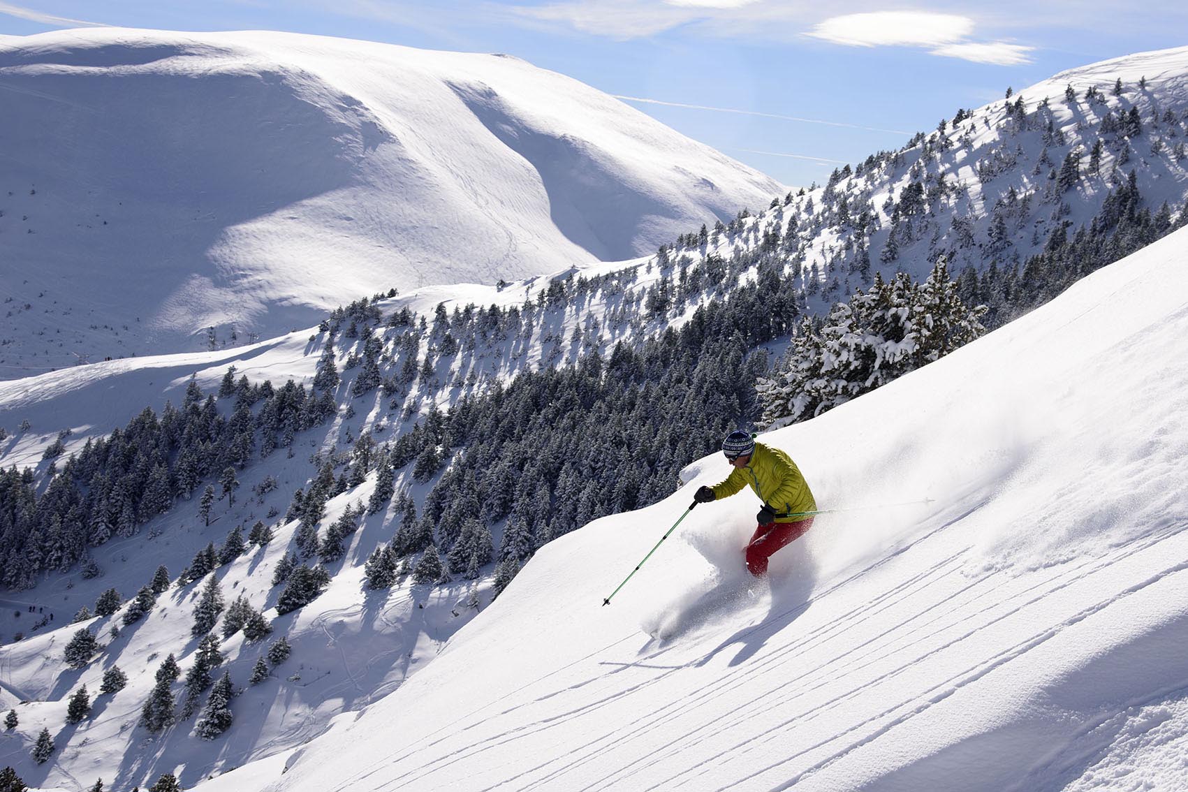 Alp 2500 és el domini que més km esquiables ofereix a prop de Barcelona. Tot plegat és gràcies els treballs de producció de neu de les darreres setmanes que permeten unir físicament La Molina i Masella a través de la pista de Dues Estacions.