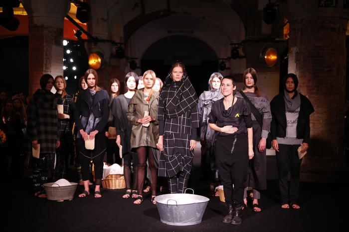 Al seu torn, la dissenyadora Krizia Robustella ha presentat per a la tardor-hivern de l’any que ve la col·lecció “Trendy Flock”. En aquesta ocasió, ha volgut fer una crítica irònica sobre la joventut actual, l’estètica, les tendències i les falsificacions. Robustella ha comptat en aquesta col·lecció amb la col·laboració de la il·lustradora Susana López: els seus inconfusibles dibuixos i il·lustracions són el motiu de dessuadores i jaquetes en l’acolorida proposta de Robustella. Una nova oportunitat per gaudir de l’street style de la dissenyadora que en aquesta ocasió ha treballat amb patró digital sobre cotó i torna a apostar pels colors i divertits.