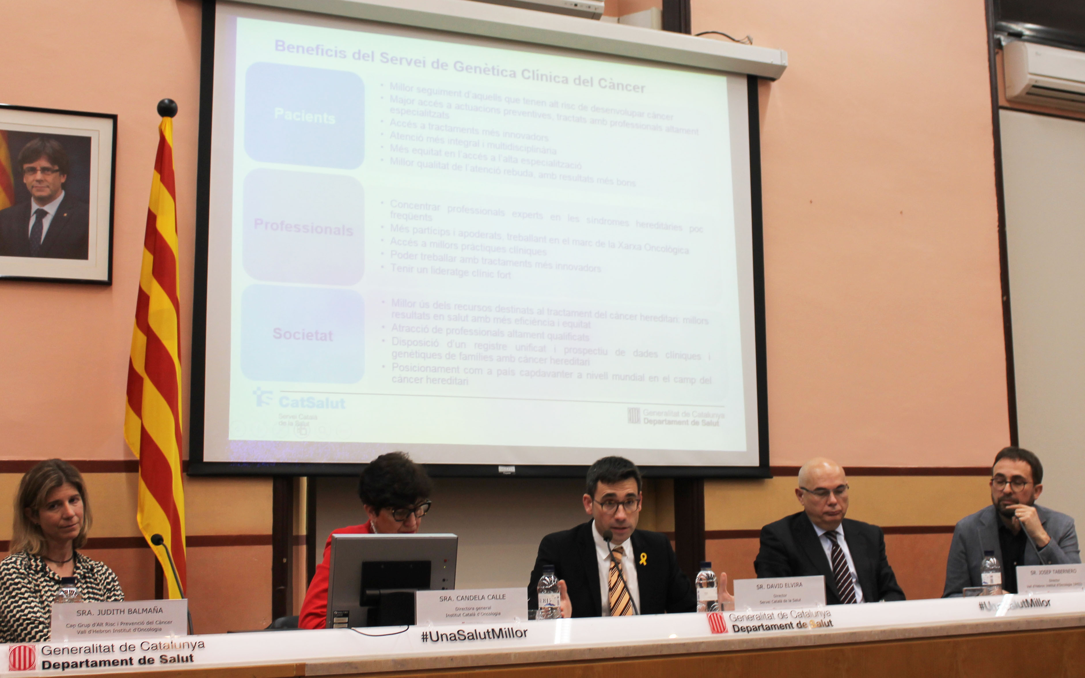El Departament de Salut ha presentat avui en roda de premsa, coincidint diumenge amb el Dia Mundial contra el càncer, la creació del Servei de Genètica Clínica del Càncer amb l’objectiu de concentrar l’expertesa sobre els càncers hereditaris per a poder millorar-ne el seu diagnòstic i abordatge.