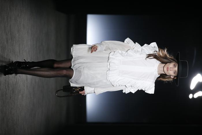 LOA by Lidia Aguilera ha obert aquesta tarda la passarel·la amb la col·lecció “NO TITLE#8”. Segons paraules de la pròpia dissenyadora, és una col·lecció inspirada en el present amb influències del passat, que buscar el concepte real de moda, que es basa en el simple objectiu de vestir una dona del present. Aguilera s’ha inspirat en les heroïnes feministes els 80s com Madonna o Cindy Sherman, per aconseguir un look femení que transmet seguretat que queda pales en les siluetes. Volums, prisat, brodats, volants i teixits molt especials com el cotí amb encaixos, donen forma a una col·lecció amb un cert aire teatral. Destaquen les delicades camises en blanc o cru, amb volums aconseguits amb volants i textures, i els vestits vaporosos, els vestits baby doll curts, al genoll o en versió maxi amb un cert aire boho. Els colors de la col·lecció són el blanc, el negre, el blau, i el verd amb algun look amb especials estampats.