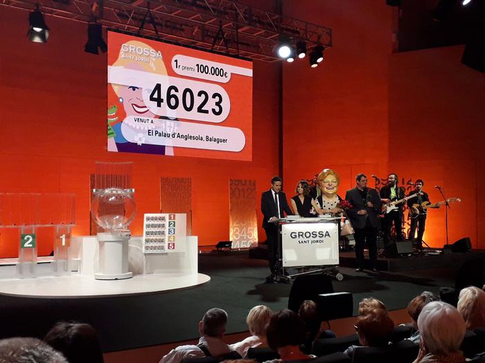 Loteria de Catalunya ha celebrat la segona edició del sorteig de La Grossa de Sant Jordi que ha repartit més de 4,5 milions en premis. El sorteig s’ha celebrat aquest divendres a la Sala Simfònica de l’Auditori de Girona, en un programa especial, conduit per Lluís Marquina i Candela Figueras que s’ha pogut veure en directe per TV3. També hi han participat l’Anna Bertran i el Ferran Aixalà amb la banda “Pastorets Rock” que ha posat la nota musical a l’espectacle.