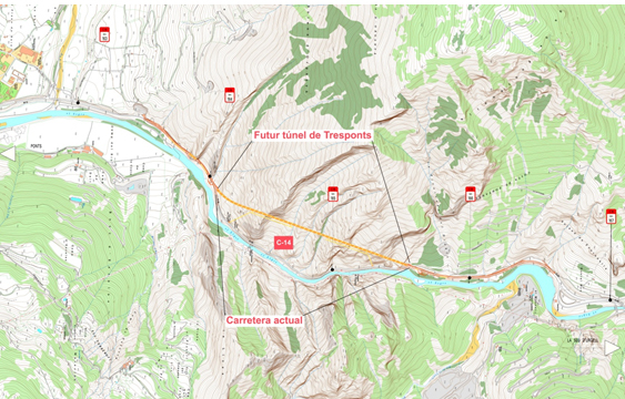 El Departament de Territori i Sostenibilitat té en execució des de la tardor passada les obres de condicionament i millora de la seguretat a la C-14 a l’altura d’Organyà, que inclouen la construcció d’un túnel per evitar el pas per un tram del congost de Tresponts. En el marc dels treballs preparatoris abans d’iniciar l’excavació del túnel, demà dijous, 10 de maig, es duran a terme diverses voladures de prova per analitzar les vibracions que es produeixin en el terreny i determinar com seran les voladures que s’hauran d’efectuar per executar la infraestructura.