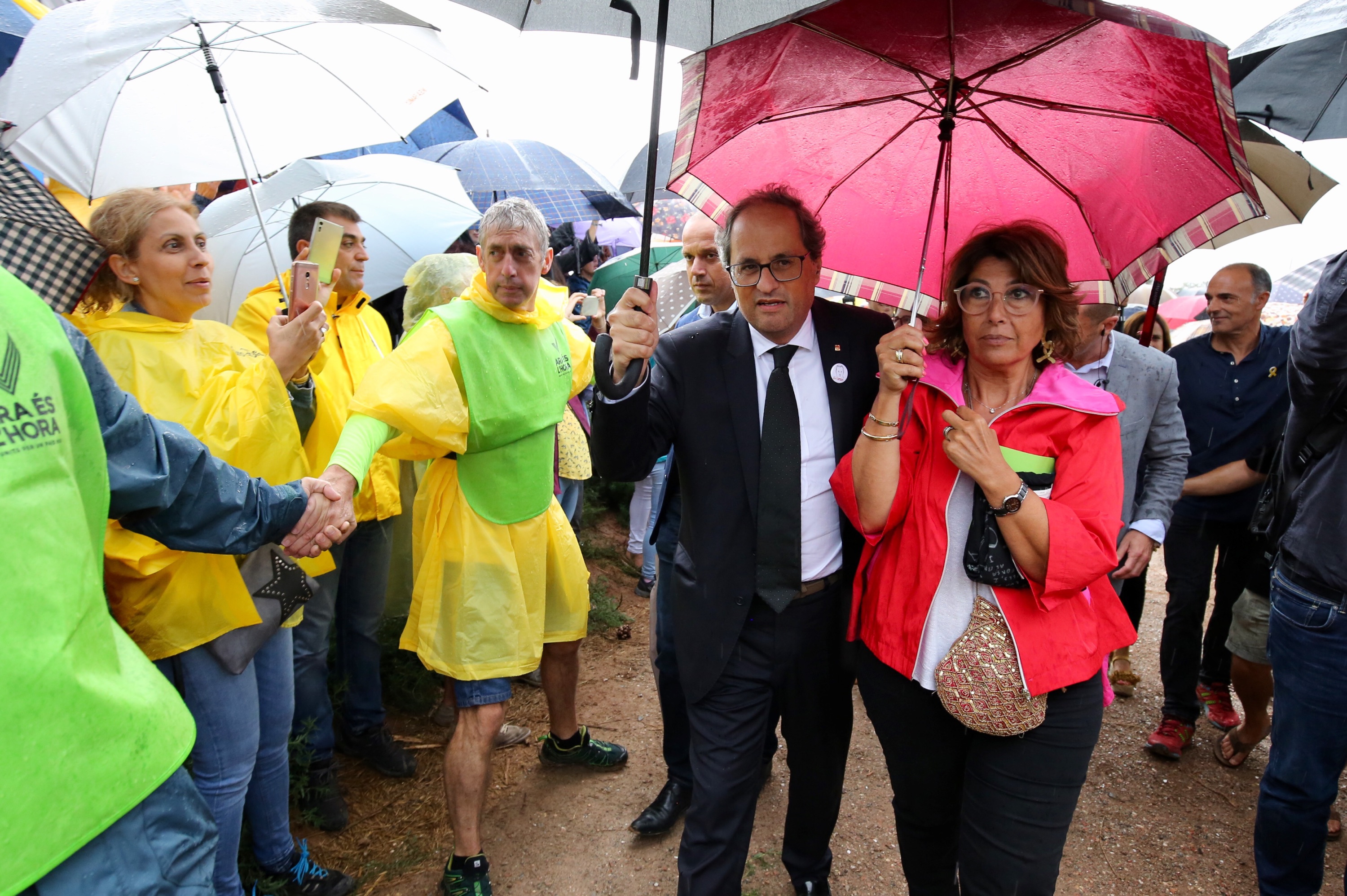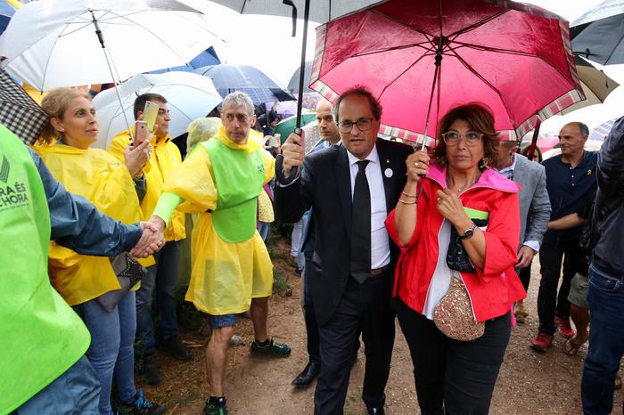 El president Torra ha tingut també paraules per al públic assistent a l'acte: "gràcies per mullar-vos". I ha afegit: "gràcies per mullar-vos cada dia pels drets humans, pels drets nacionals, per l'autodeterminació i per la independència"."En els moments més foscos de l'article 155, de la presó i de l'exili la vostra veu hi va ser sempre", ha explicat tot afegint que "la vostra veu ens ha guiat".