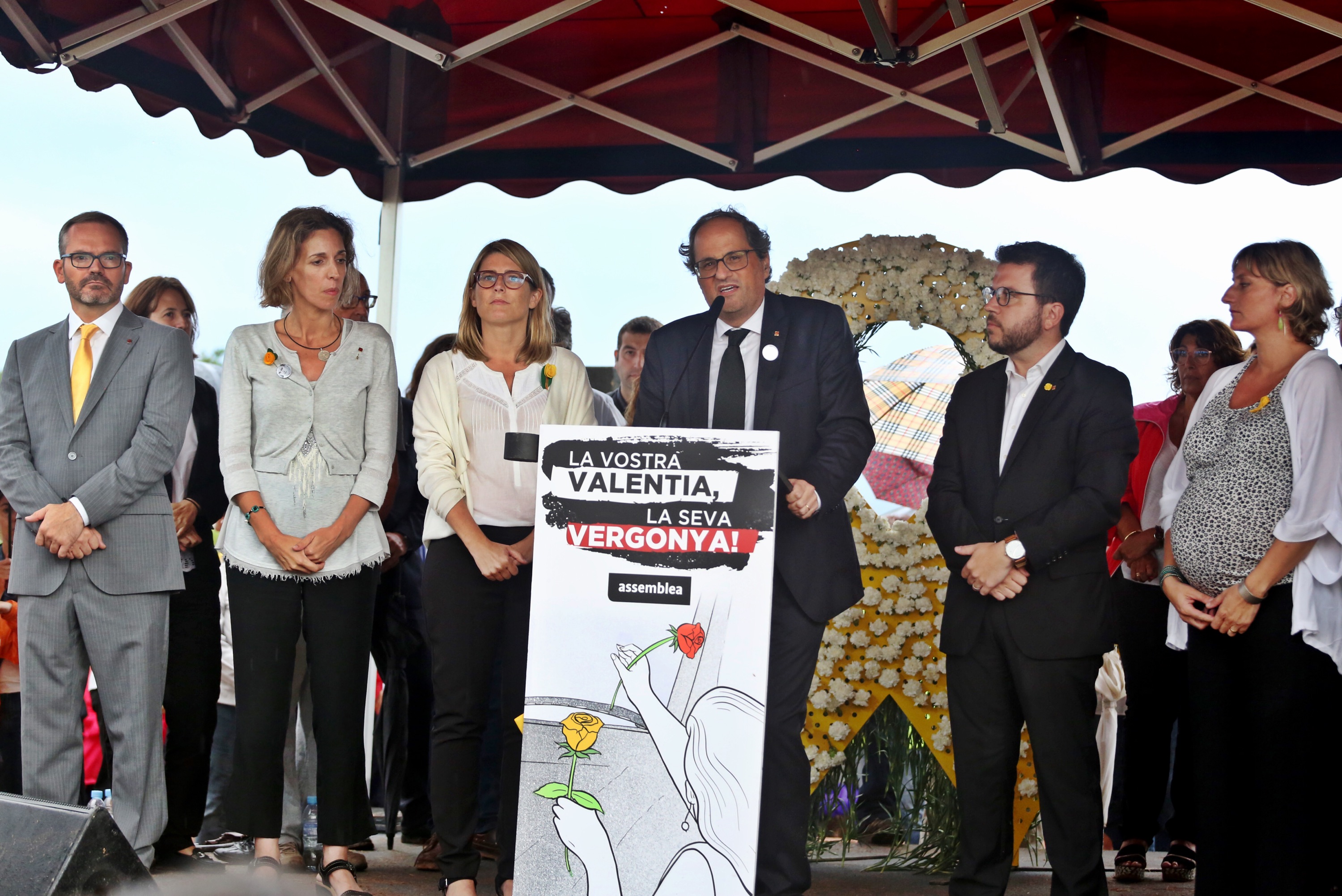 Durant l’acte, el president ha reivindicat els presos polítics i els exiliats i ha mostrat el compromís del Govern per lluitar per la seva llibertat tot fent una crida a “iniciar una marxa pels drets civils i socials d'aquest país fins a fer efectiva la república”. Abans de l’acte, el president s’ha reunit amb Quim Forn al centre penitenciari de Lledoners, una trobada a la qual després s’hi han afegit els presos polítics Jordi Cuixart, Jordi Sánchez, Oriol Junqueras, Jordi Turull i Josep Rull. El cap de l’Executiu ha estat acompanyat del vicepresident del Govern, Pere Aragonès; la consellera de la Presidència, Elsa Artadi; el conseller d’Interior, Miquel Buch, i la consellera de Justícia, Esther Capella.