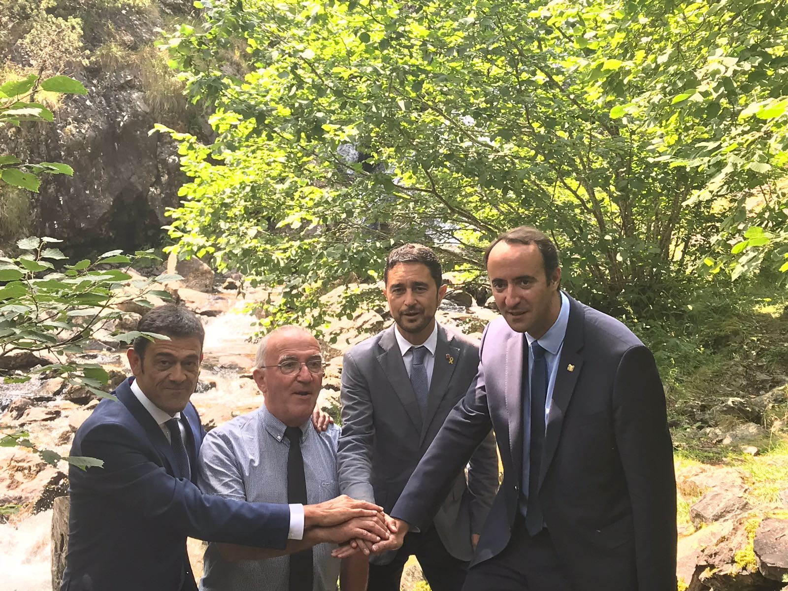 El conseller de Territori i Sostenibilitat, Damià Calvet, en representació del Parc Natural de l’Alt Pirineu; el cònsol major de la Massana i president de l’òrgan rector del Parc Natural comunal de les Valls del Comapedrosa (Andorra), David Baró; el cònsol major d'Ordino i president de l´òrgan rector del Parc Natural de la Vall de Sorteny (Andorra), Josep Àngel Mortés, i el president del Parc Natural Regional de Pyrénées Ariégeoises (França), André Rouch, han signat avui el protocol de creació del Parc Pirinenc de les Tres Nacions, una marca d’identitat comuna per millorar la gestió i promoció d’una de les àrees transfrontereres protegides més extenses d’Europa, entre Catalunya, Andorra i França.