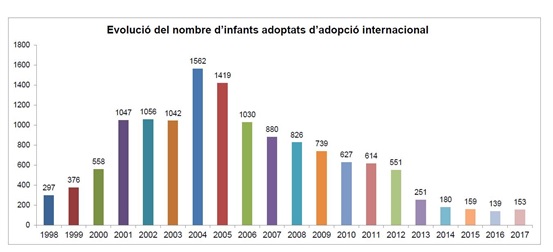 Des de la creació de l’ICAA el 1998, les famílies catalanes han adoptat uns 15.707 infants, 13.506 dels quals a través de l’adopció internacional. L’any que més infants es van donar en adopció va ser el 2004. Hi va haver 1.562 adopcions internacionals i 121 de nacionals. L’any passat a Catalunya hi va haver 153 adopcions internacionals i 62 de nacionals.