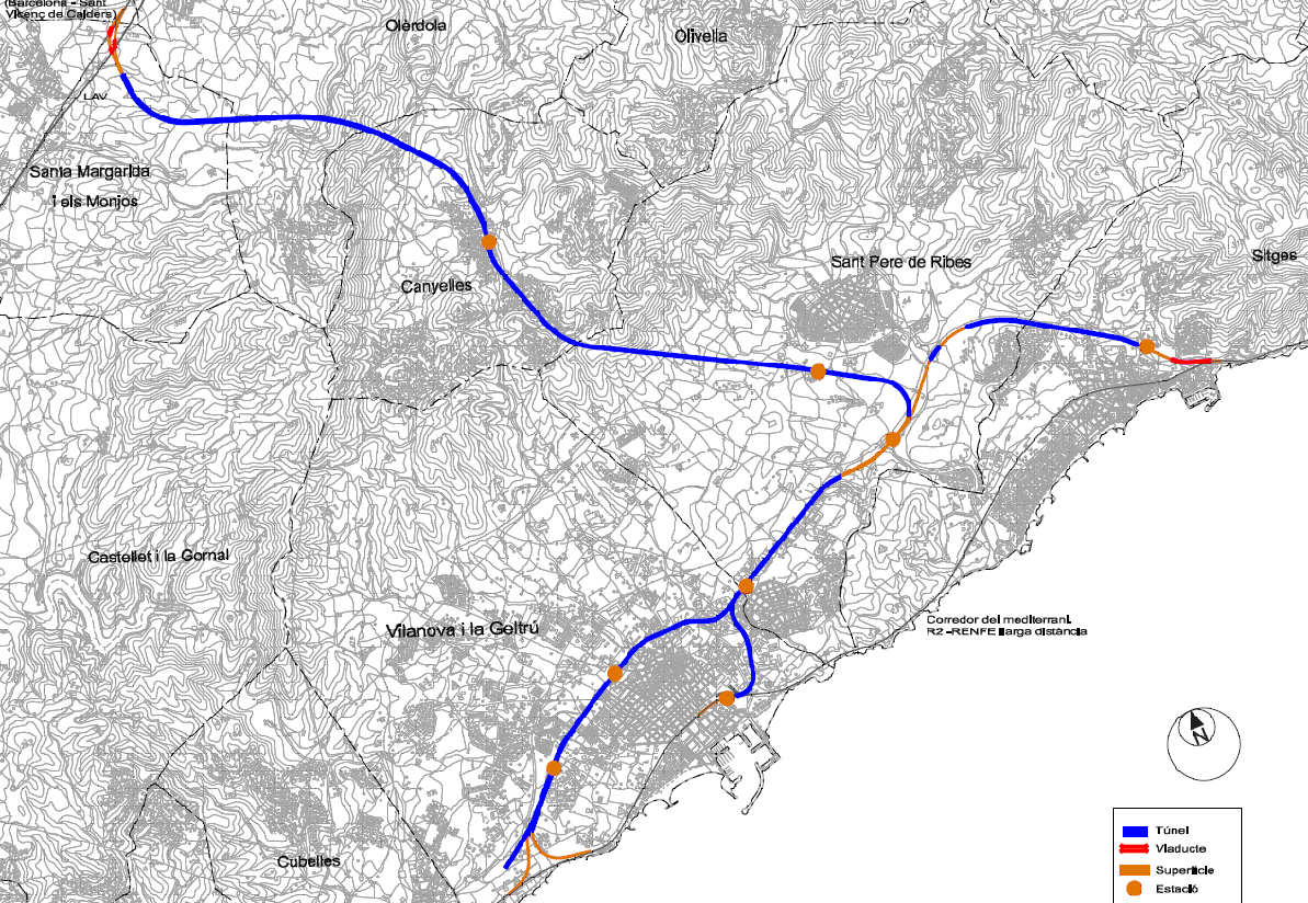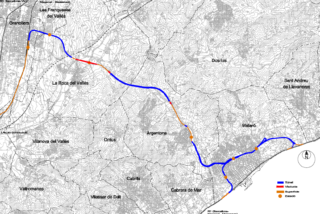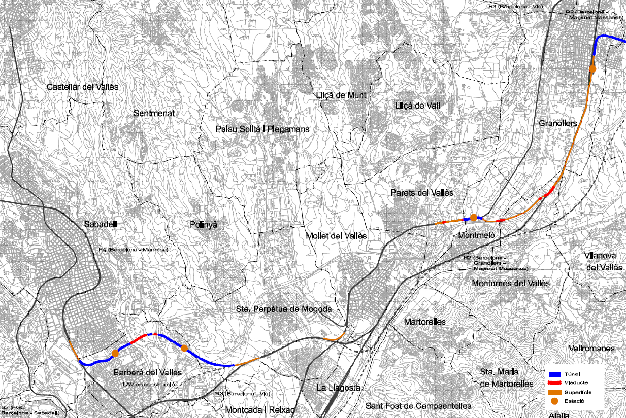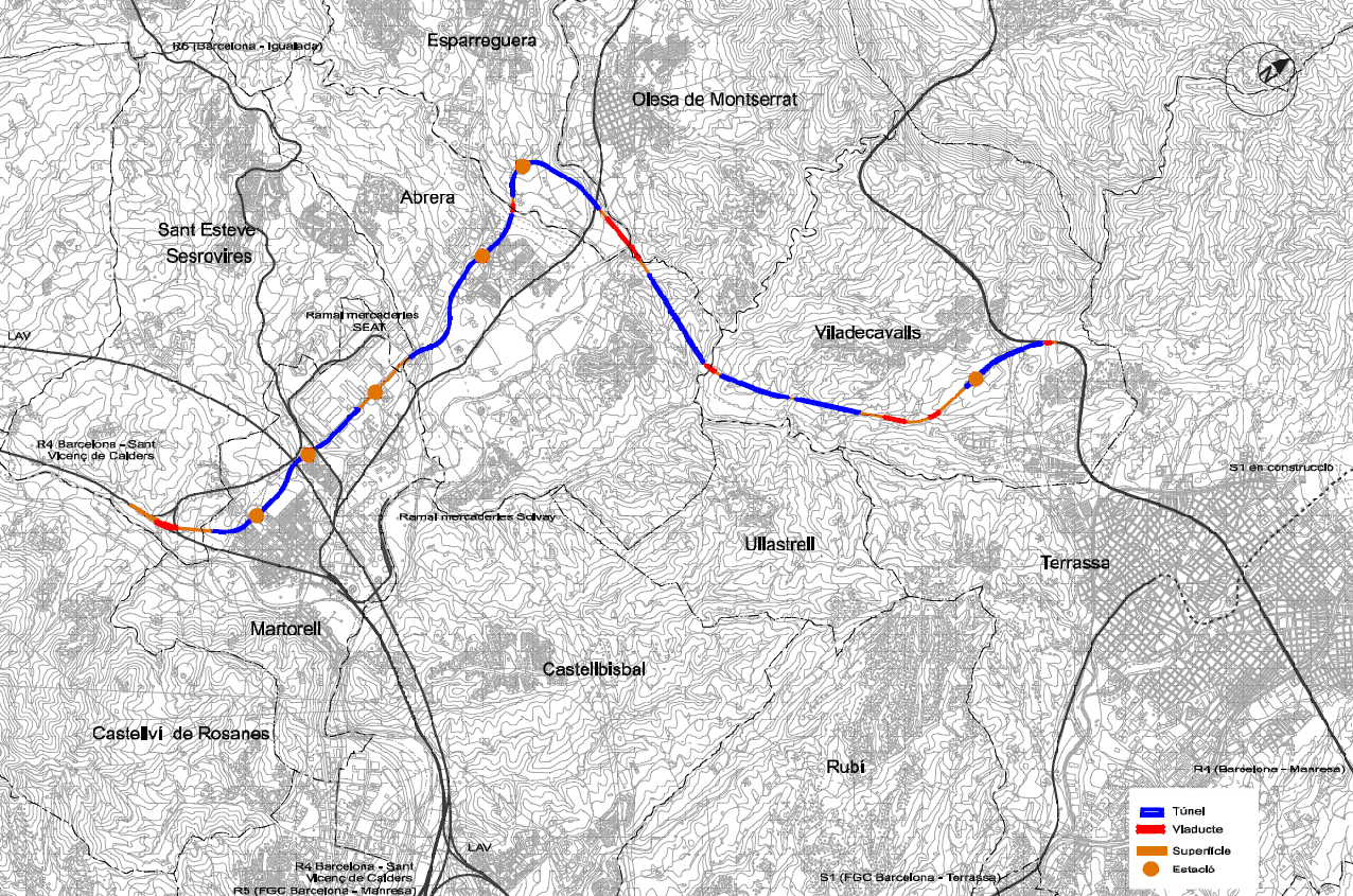 Tenint en compte l’orografia del terreny i la densitat dels nuclis urbans travessats per la traça, la nova línia discorrerà en túnel en un 60% del recorregut, per tal de minimitzar la seva afectació, mentre que els trams en viaducte representaran el 5% del total.