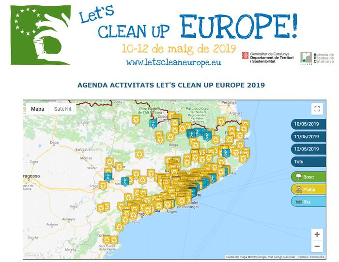 Entre el 10 i el 12 de maig de 2019 se celebra a Europa la iniciativa “Let’s Clean Up Europe!” en la que totes les persones poden participar, de manera voluntària, en diferents accions de neteja dels espais naturals, com boscos, platges, rius o rieres. La Comissió Europea fomenta les accions de sensibilització sobre l’abast del problema dels abocaments incontrolats i la promoció de canvis en els hàbits i el comportament de la ciutadania.