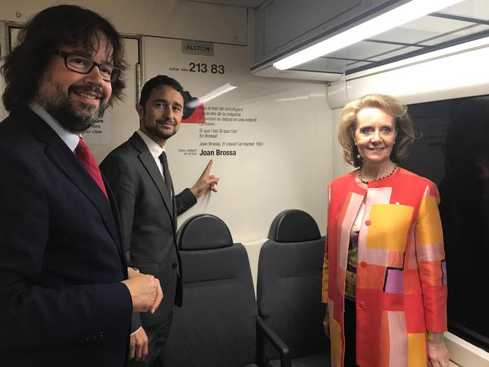 Durant l’acte, Calvet ha destacat que a Catalunya “l'amor que tenim per la cultura el portem a tots els àmbits, també al del transport públic i per això la Generalitat posa noms d'autors literaris als trens”. El titular de Territori i Sostenibilitat ha donat les gràcies a FGC “per fer del transport públic quelcom més que dur gent d’un lloc a l’altre. Amb aquest tipus d’iniciatives donem valor afegit”. La consellera de Cultura s'ha mostrat molt satisfeta de “batejar trens que tenen noms d'Any literari de dos autors que, cadascú a la seva manera, van arrelar en el territori”.