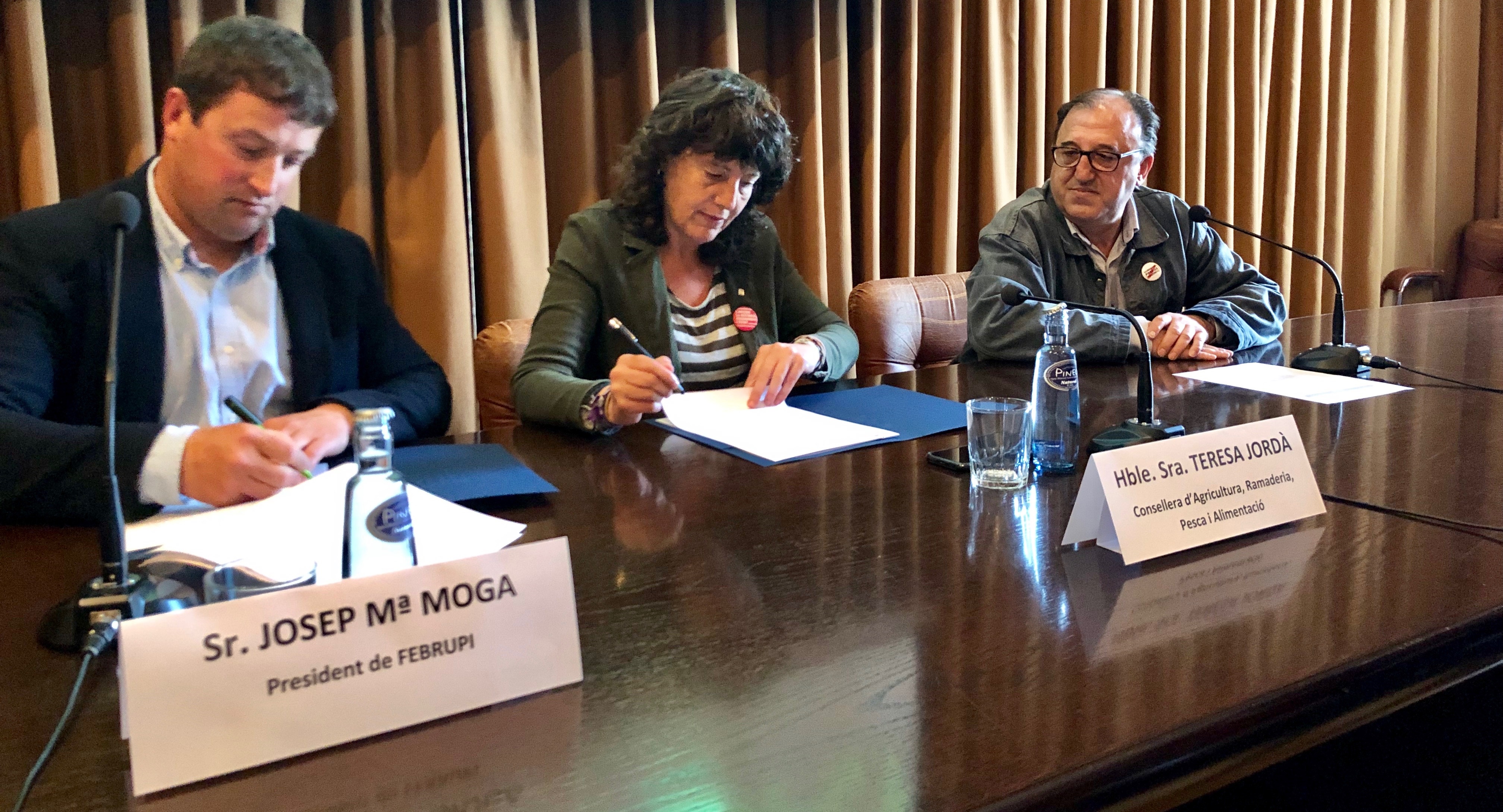 En el decurs d’aquest mateix acte, la consellera ha signat un conveni de col·laboració amb el president de la Federació Catalana de la Raça Bruna dels Pirineus (FEBRUPI), Josep M. Moga, per a l’organització i el funcionament d’aquest centre de tetstatge.