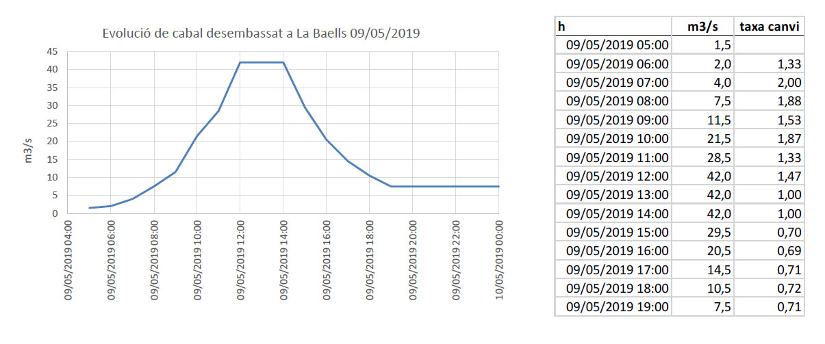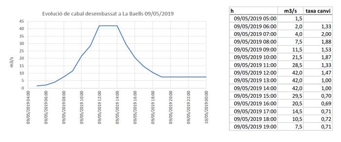 A partir del migdia (al voltant de les tres de la tarda), es començarà a disminuir gradualment el cabal i es preveu que a partir de les sis de la tarda aquest sigui l’habitual en condicions normals (1 m3/s).