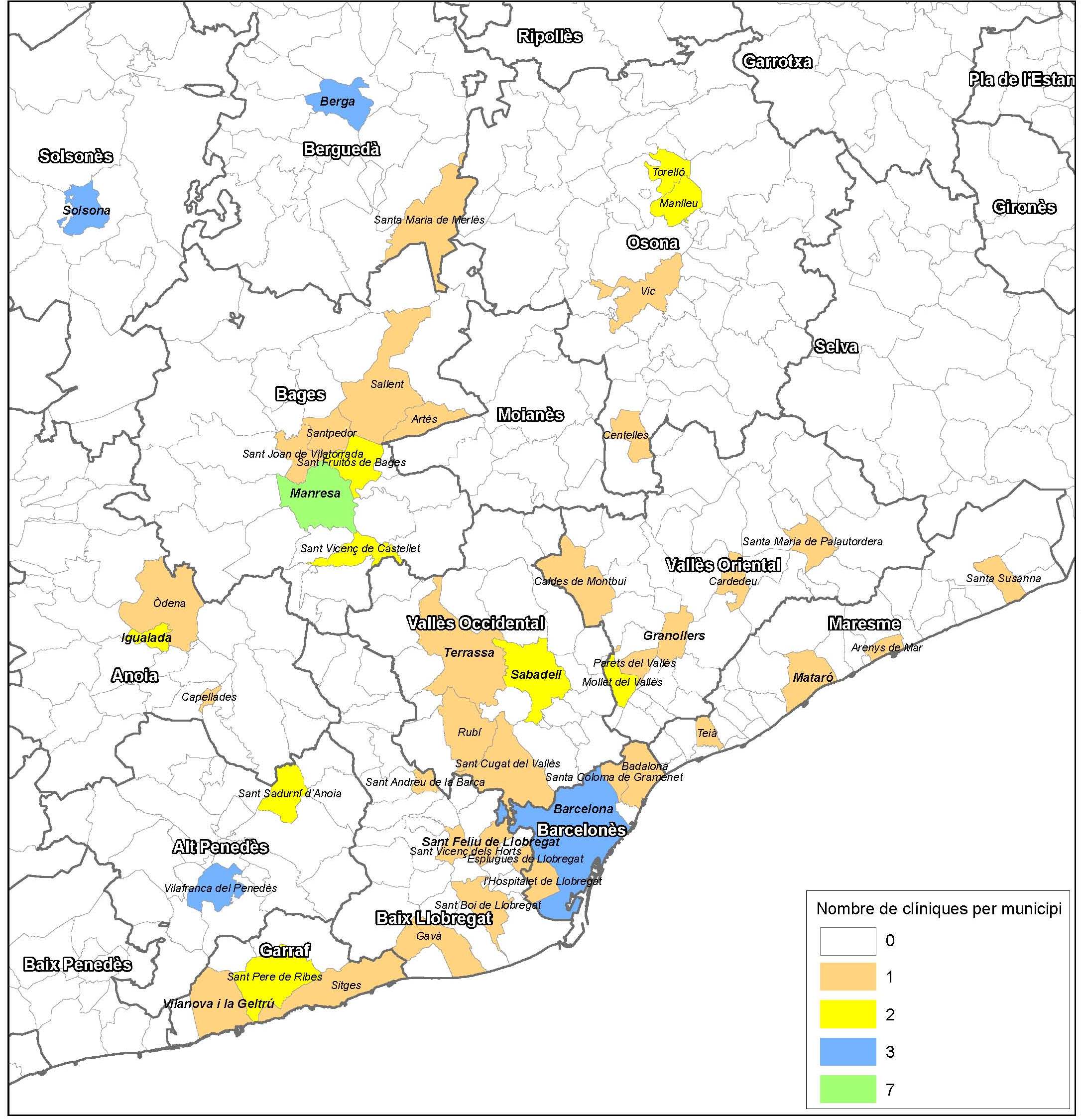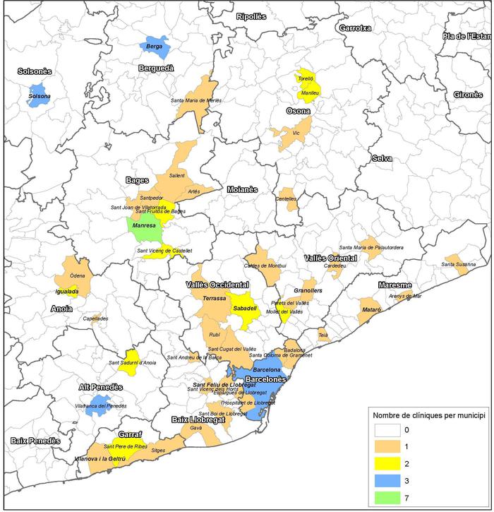 Per comarques, els centres veterinaris col·laboradors es distribueixen de la següent manera: