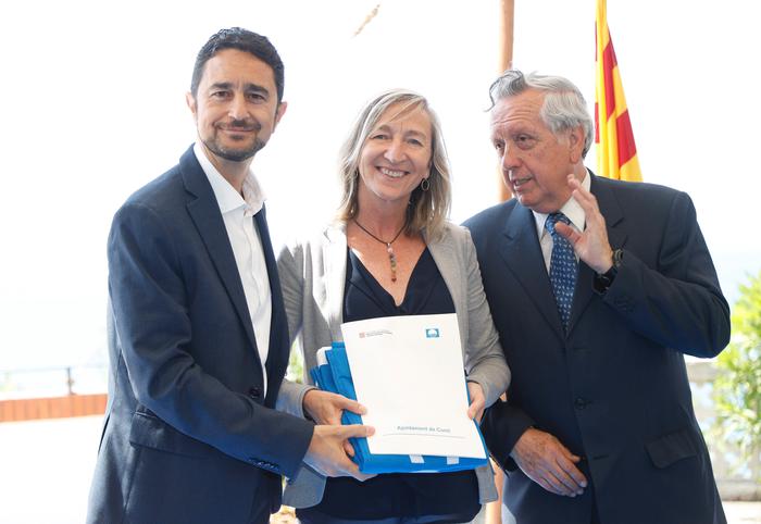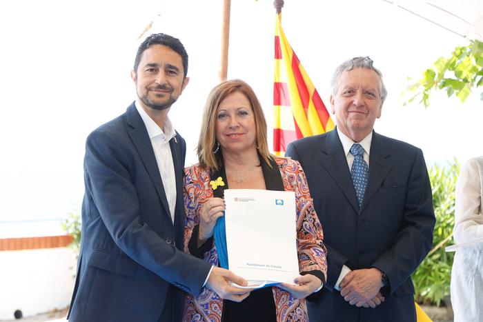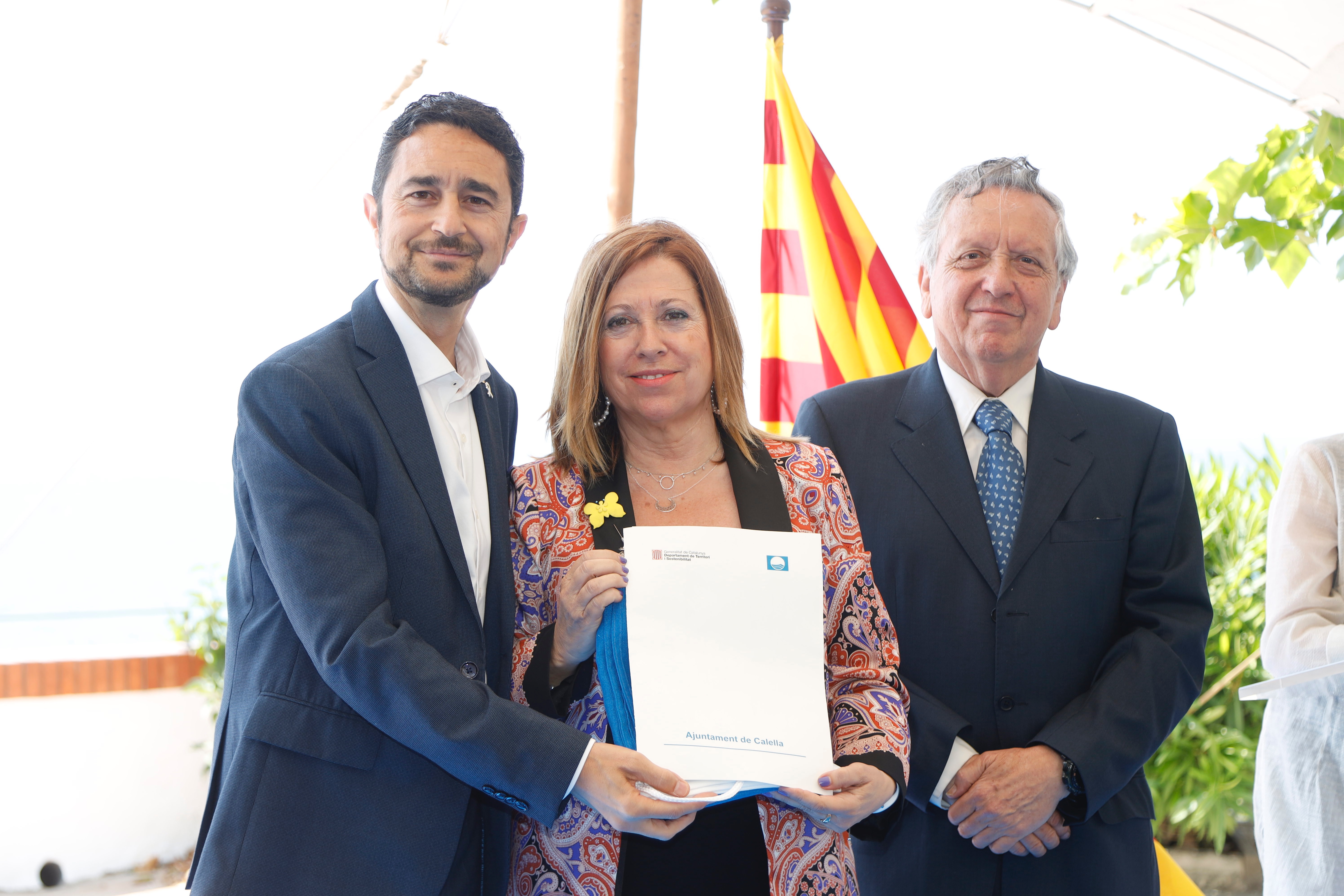 El conseller de Territori i Sostenibilitat, Damià Calvet, acompanyat de l’alcaldessa de Calella (Maresme), Montserrat Candini, i del president de l’Associació d’Educació Ambiental i del Consumidor (Adeac), José R. Sánchez Moro, ha presidit avui l’acte de lliurament del guardó de les Banderes Blaves corrresponent al 2019. També hi han assistit el secretari d'Hàbitat Urbà i Territori, Agustí Serra; el director general de Polítiques de Muntanya i Litoral, Albert Alins; el director de l’Agència Catalana de l’Aigua (ACA), Lluís Ridao; el gerent de Ports de la Generalitat, Joan Pere Gómez, i el director de l’Institut Cartogràfic i Geològic de Catalunya, Jaume Massó.