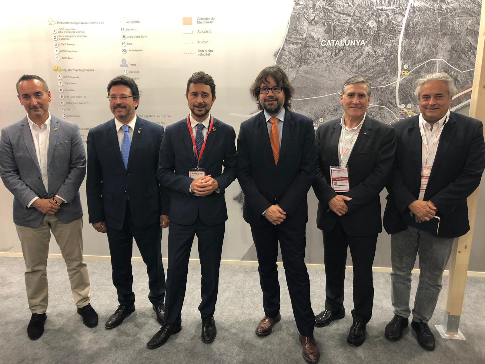 El conseller de Territori i Sostenibilitat, Damià Calvet, acompanyat del president d’FGC, Ricard Font, ha presentat el detall de la compra del nou material mòbil per al transport de mercaderies de l’operadora a l’estand de la Generalitat de Catalunya present al Saló Internacional de la Logística (SIL).