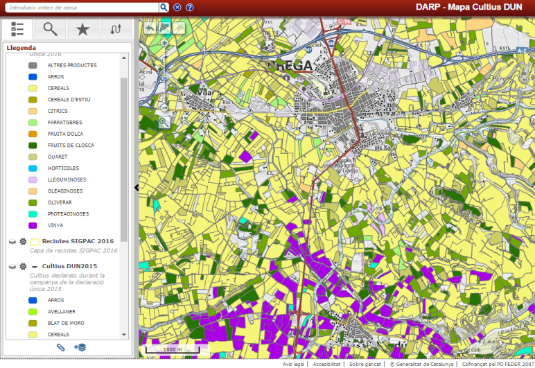 El Departament d’Agricultura, Ramaderia, Pesca i Alimentació (DARP) de la Generalitat de Catalunya va iniciar al 2015 la publicació de la capa de cultius de Catalunya amb origen DUN. Actualment, hi ha disponibilitat de consulta i descàrrega de 5 campanyes (2015 a 2019).