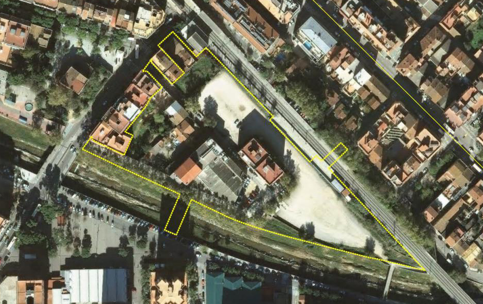 L’àmbit té una superfície de 19.455 m2 i està delimitat per la línia fèrria, el passeig del Pont i el riu Sec i l’avinguda de la Primavera. Es troba parcialment edificat, amb dos blocs residencials de principis del segle XX a l’avinguda de Primavera que deixen un pas d’accés al vestíbul de l’estació. Els dos edificis es van construir amb una edificabilitat molt superior a la que després va permetre el Pla General Metropolità (PGM) de 1976. A banda, a l’àmbit també es troben cases unifamiliars al carrer Santa Teresa i els cinemes el Punt.