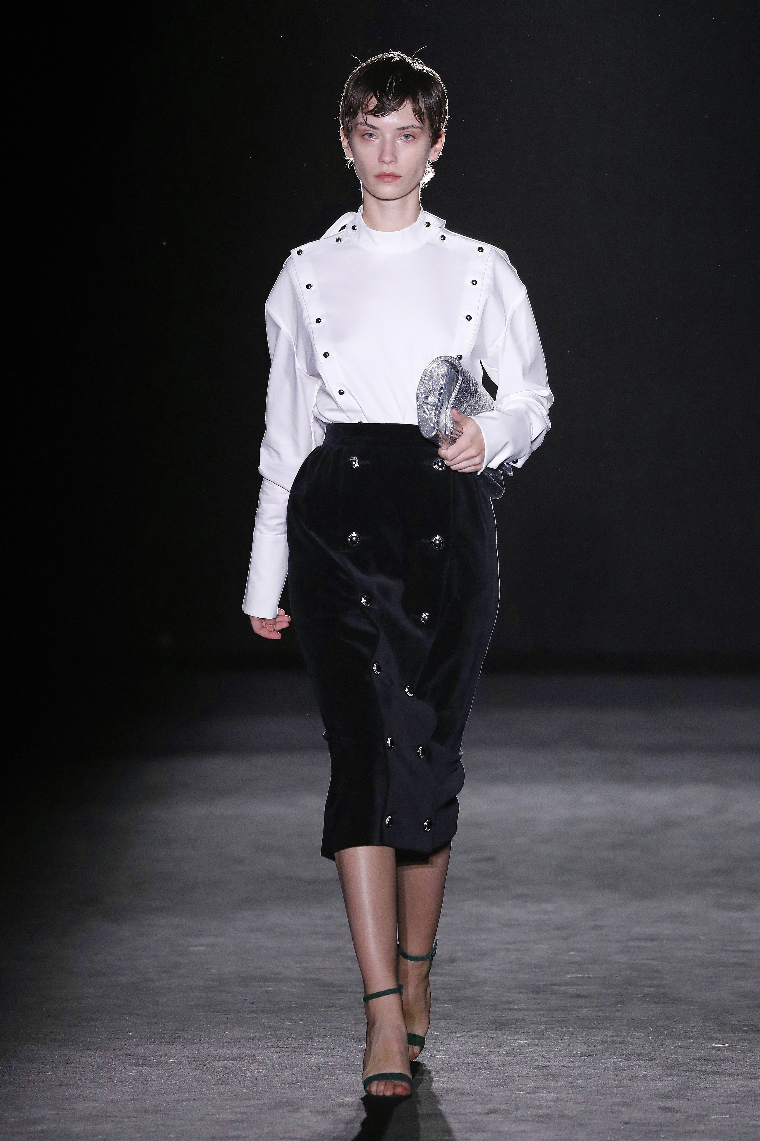 Prèviament, a les 19h, la dissenyadora Txell Miras presentarà Txell Miras SS20, una proposta per a la propera primavera-estiu, on aborda el futur del post humanisme i transhumanisme, un futur en el que les màquines tindran necessitats humanes. La dissenyadora ha plasmat aquesta reflexió en una col·lecció que combina contrastos, tant cromàtics, com de teixits i formes: colors càlids, marrons, ocres i verd oliva amb colors més propis de la fredor tecnològica; blanc, negre i gris; peces elaborades amb llana contrasten amb teixits com el neoprè, el xarol o fins i tot teixits plastificats, d’estètica robòtica. I quant a siluetes, predominen els volums simètrics i arquitectònics que es contraresten amb altres més suaus, arrodonits i adaptats al cos humà. Una barreja entre detalls del passat i peces minimalistes del futur.