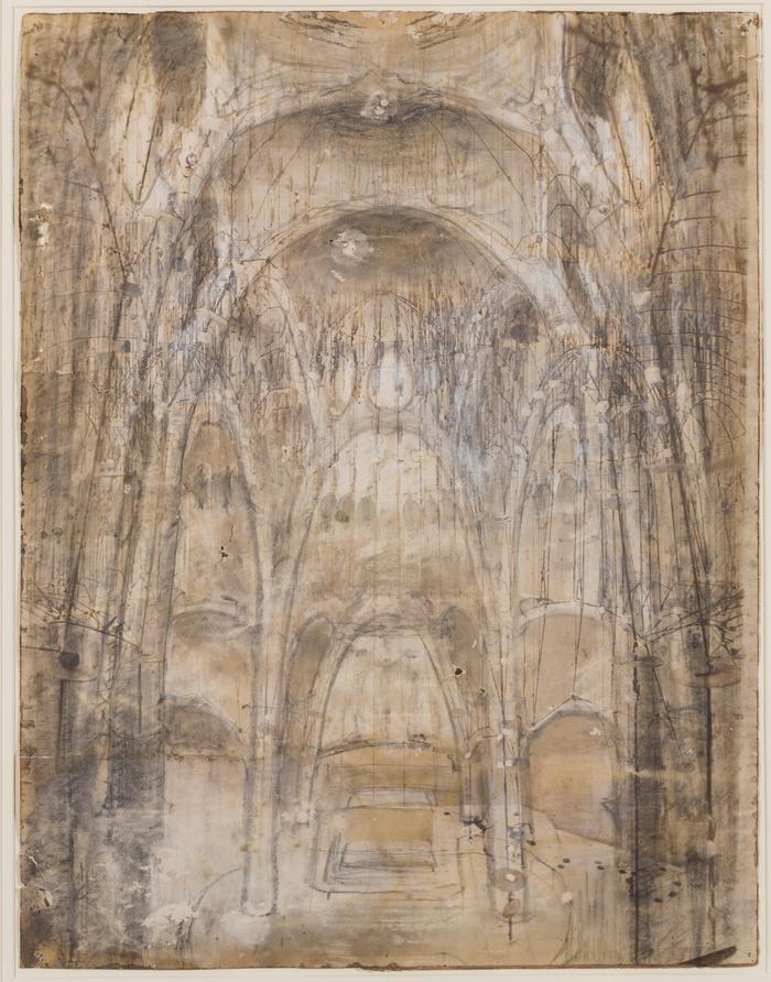 Es tracta de dues obres d’extraordinària importància i singularitat atès l’escàs material documental que es conserva de les obres més emblemàtiques de Gaudí i, en particular, de l’encàrrec que Eusebi Güell li va fer per construir una església a la colònia tèxtil obrera de la seva propietat. Gaudí va realitzar un seguit d’estudis i maquetes per projectar l’estructura d’aquesta església, de la qual es va construir únicament la cripta. Part d’aquest material va ser destruït durant la Guerra Civil i els dos dibuixos que ara s’incorporen a les col·leccions del Museu Nacional van romandre amagats a la carbonera d’una masia de la Colònia Güell fins la seva descoberta el 1967.