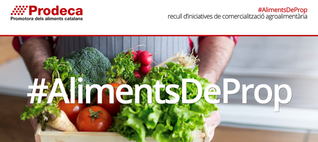El Departament d’Agricultura, Ramaderia, Pesca i Alimentació (DARP) de la Generalitat de Catalunya, a través de l’empresa pública Promotora dels Aliments Catalans (PRODECA), ha posat en marxa un web per a reunir totes les iniciatives individuals i col·lectives que posen en contacte productors i consumidors amb la finalitat de facilitar la comercialització de productes de proximitat en aquest context d’excepcionalitat. Allotjat en la pàgina web de PRODECA, el nou cercador d’#AlimentsDeProp posa a disposició de la ciutadania i de les empreses un llistat d’iniciatives del sector agroalimentari identificades per àmbit territorial i per categoria de producte per a augmentar-ne la visibilitat.