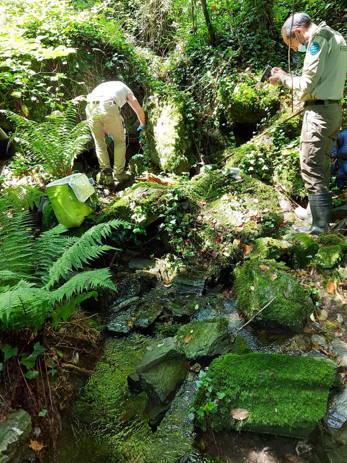 Personal tècnic del projecte Life Tritó Montseny ha alliberat aquesta primavera un total de 235 exemplars de tritons del Montseny en torrents del Parc Natural – Reserva de la Biosfera del Montseny, amb l’objectiu de continuar incrementant l’àrea de distribució d’aquesta espècie endèmica del massís, catalogada en perill crític.