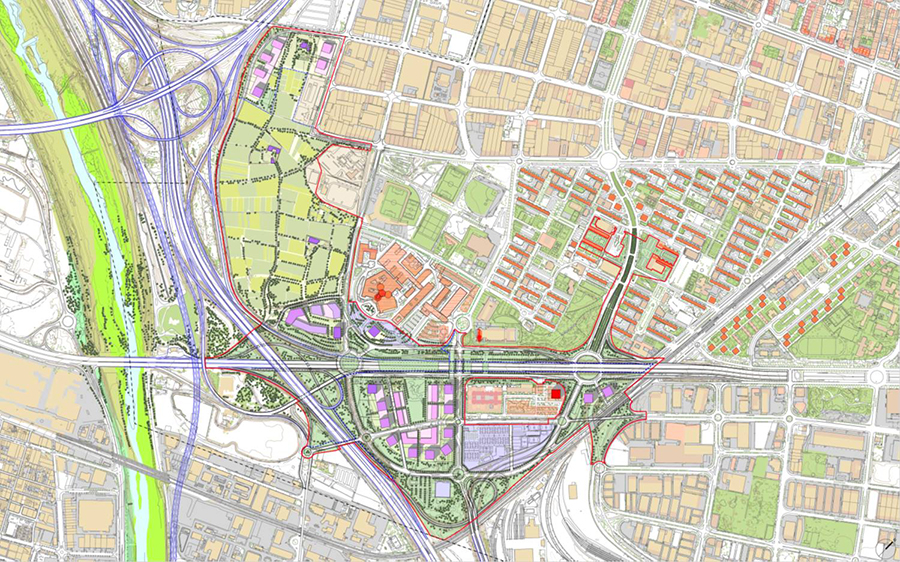 A grans trets, el PDU preveu la creació i consolidació del gran parc de Cal Trabal, la creació de teixit urbà allà on ara hi ha buit, i la definició de pols d’activitat econòmica aprofitant la posició estratègica de l’àmbit i l’existència de dos centres hospitalaris de referència. Tot això, garantint una continuïtat urbana coherent amb l’anterior tram reformat i excloent l’ús residencial.