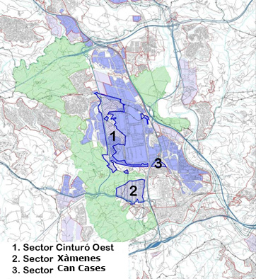 - Sector Can Cases: Amb 58.428 m2 de superfície, és una parcel·la triangular delimitada al sud per la línia de Ferrocarrils de la Generalitat de Catalunya (FGC), a l’est per l’antiga carretera N-II, i a l’oest pel ramal d’enllaç de l’A-2 i l’AP-7.