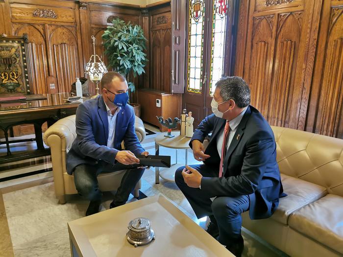 Sàmper ha signat el Llibre d'Honor de l'Ajuntament de Terrassa abans de la celebració de la Junta Local de Seguretat, a la que també han assistit la tinenta d’alcalde de Territori i Sostenibilitat, Lluïsa Melgares; el regidor de Via Pública, Protecció Civil i Seguretat, Xavier F. Rivero; a més de representants dels diferents cossos de seguretat.