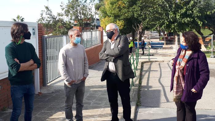 Després de visitar les obres de l’Escola Agnès, el conseller Josep Bargalló s’ha desplaçat a l’Escola Miquel Utrillo, on ha pogut veure sobre el terreny les obres de reparació de la coberta. Bargalló, a més, ha escoltat les explicacions tècniques del projecte i s’ha reunit amb l’equip directiu del centre, al pati interior de l’escola. L’escola acull actualment 470 alumnes d’infantil i primària.