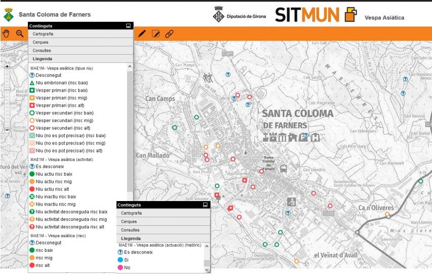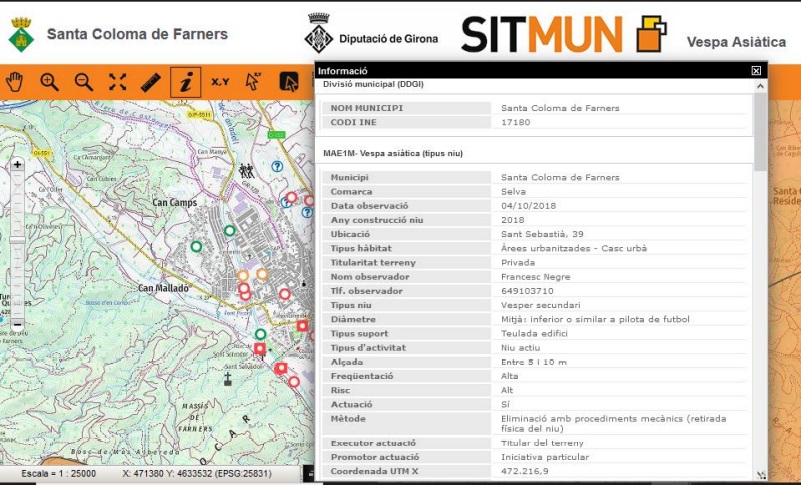 En el cas concret de la vespa asiàtica, s’ha optat per acollir-se a aquest sistema perquè és una aplicació informàtica consolidada, que afavoreix l’estandardització en la recollida de dades als ens locals de tot Catalunya i que compta amb eines i capes que faciliten l’edició, la gestió i la visualització en continu.