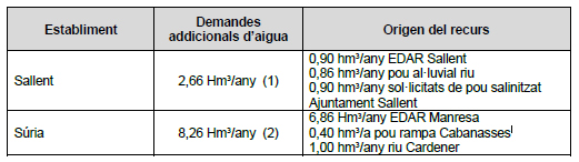 La detracció de l’aigua de la depuradora de Manresa del sistema comportarà la repercussió a Iberpotash del cost de modificar el “mix de producció” de recursos hídrics en la xarxa Ter-Llobregat, amb la finalitat d’incrementar la producció d’aigua dessalinitzada en un volum equivalent a les detraccions d’aigües depurades.