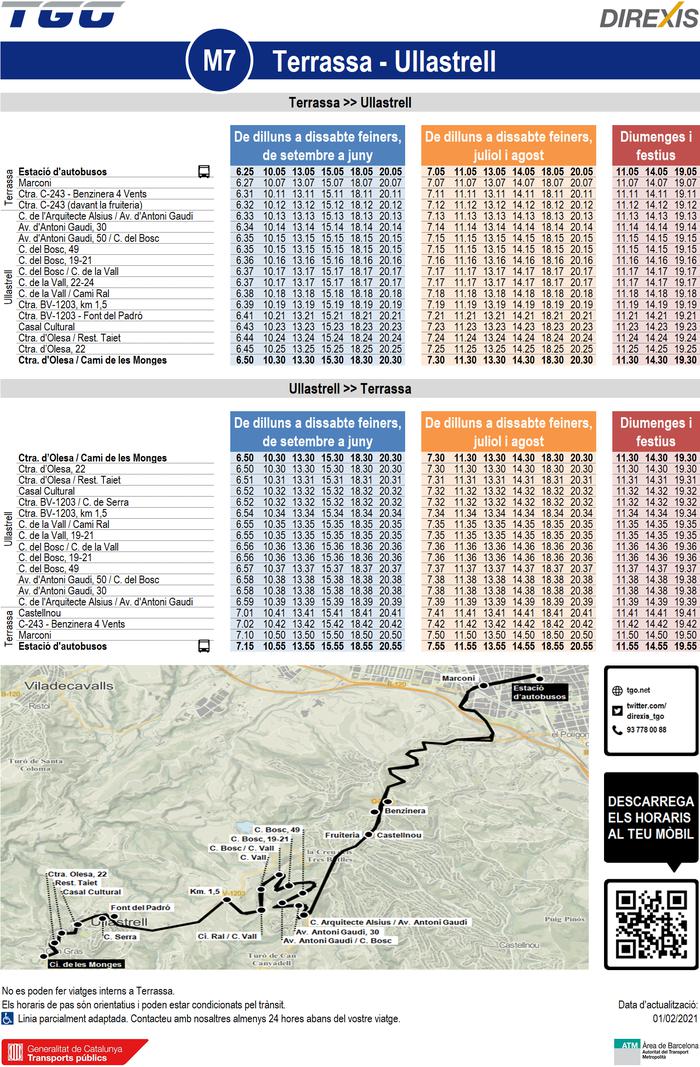 Amb l’objectiu de connectar en transport públic el màxim de territori possible, des de dilluns, 8 de febrer, s’amplia el recorregut de la línia M7: Terrassa (Estació Autobús)-Ullastrell per tal de donar servei a la urbanització de Ca n’Amat d’Ullastrell.