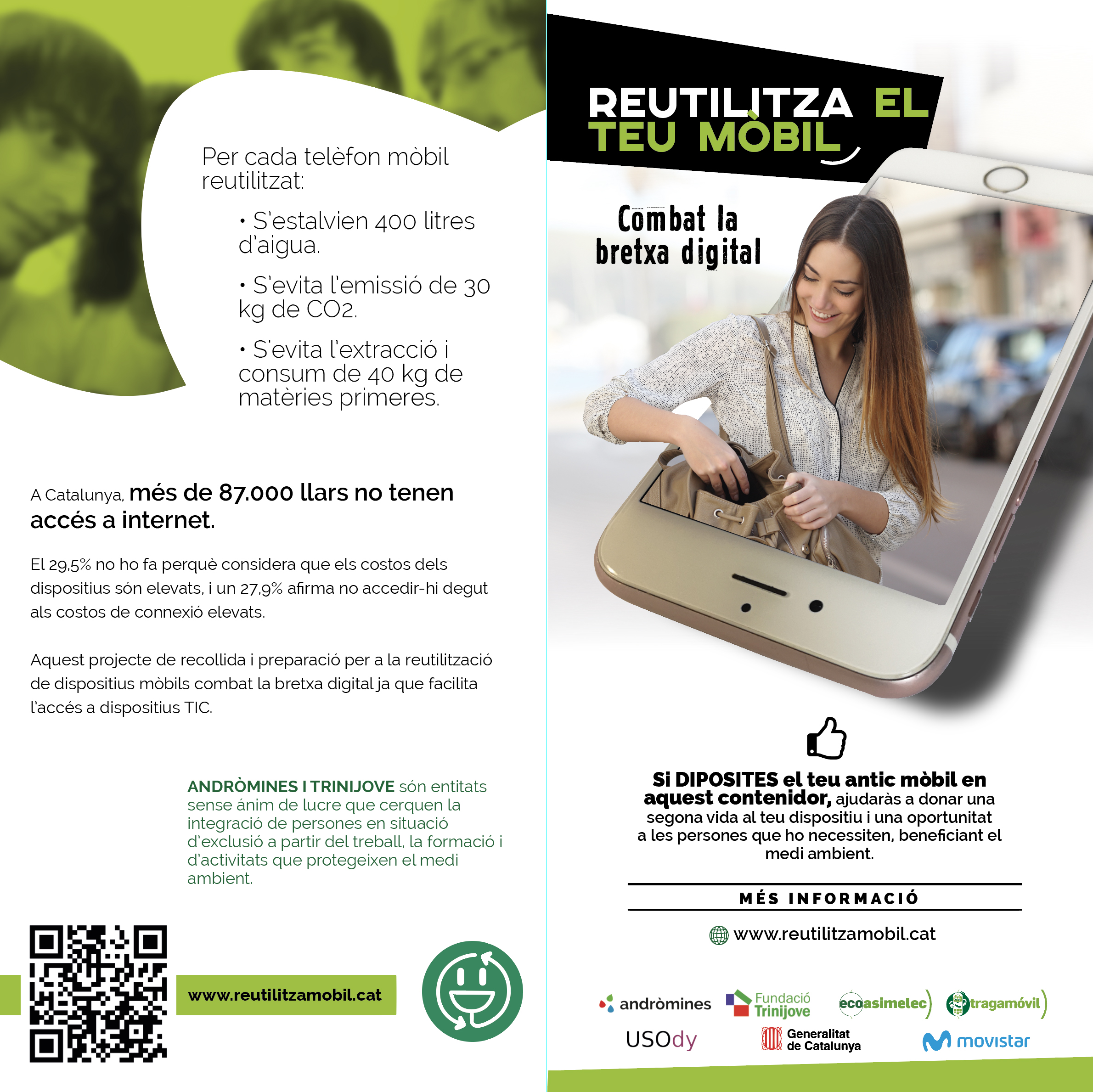 Aquesta campanya pilot busca recuperar aquests telèfons i donar-los una segona vida amb la seva reutilització o amb la incorporació en un altre producte a través del reciclatge dels seus components i materials. La campanya també vol transmetre a la ciutadania els impactes positius, des d’un punt de vista ambiental i social, que genera participar en la recollida de terminals mòbils.
