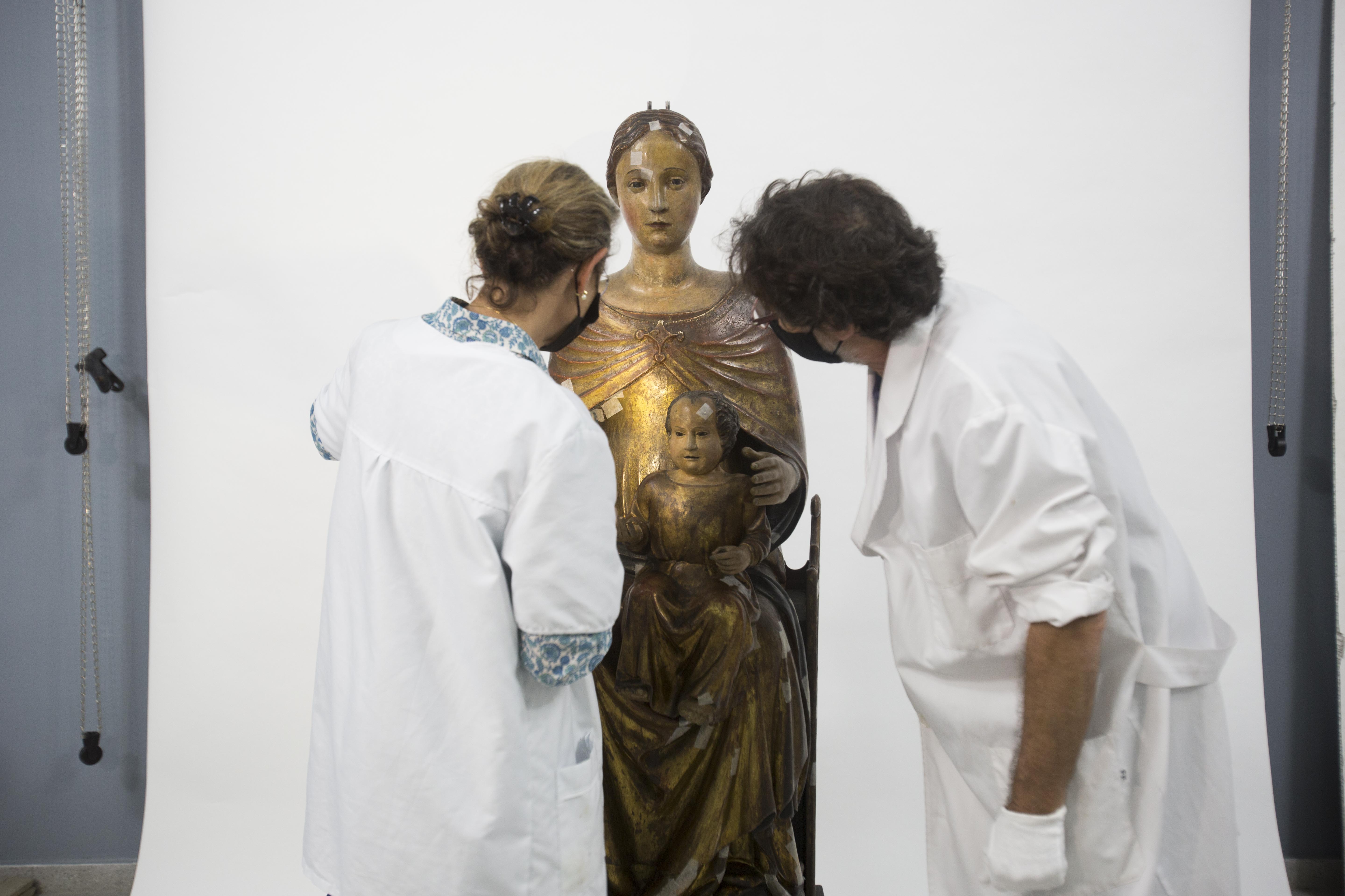 També es documentarà la peça fotogràficament en les diverses etapes del procés de conservació, i es faran exàmens amb diferents sistemes d'il·luminació aplicats a la fotografia, així com amb tècniques fotogràfiques basades en radiacions IR i UV, que, juntament amb la radiografia, possibilitaran conèixer materialment l'obra. Això es complementarà amb les anàlisis fisicoquímiques que es duran a terme al propi laboratori del CRBMC, encaminades a determinar la naturalesa dels materials que constitueixen l’obra i a caracteritzar els productes afegits en intervencions anteriors i els productes d'alteració o d'envelliment. Per completar la conservació curativa es farà la fixació definitiva dels aixecaments de capa de preparació i pictòrica, l’estabilització de les fissures, la neteja superficial i les proves de neteja i de remoció de vernissos, seguint el protocol de neteges del CRBMC. Finalment, amb totes les dades obtingudes es plantejarà la proposta de restauració definitiva de la talla, de cara al 2022.