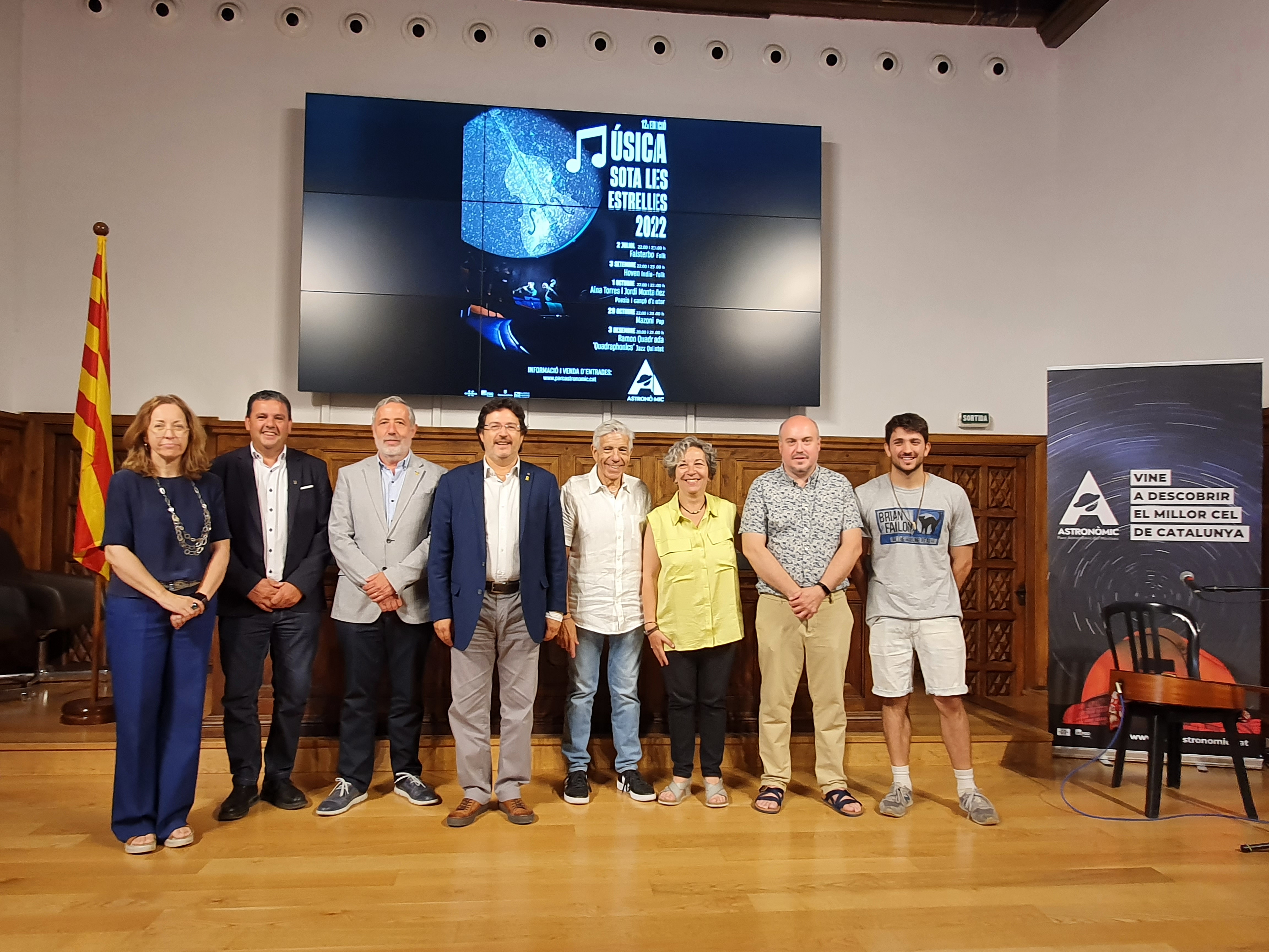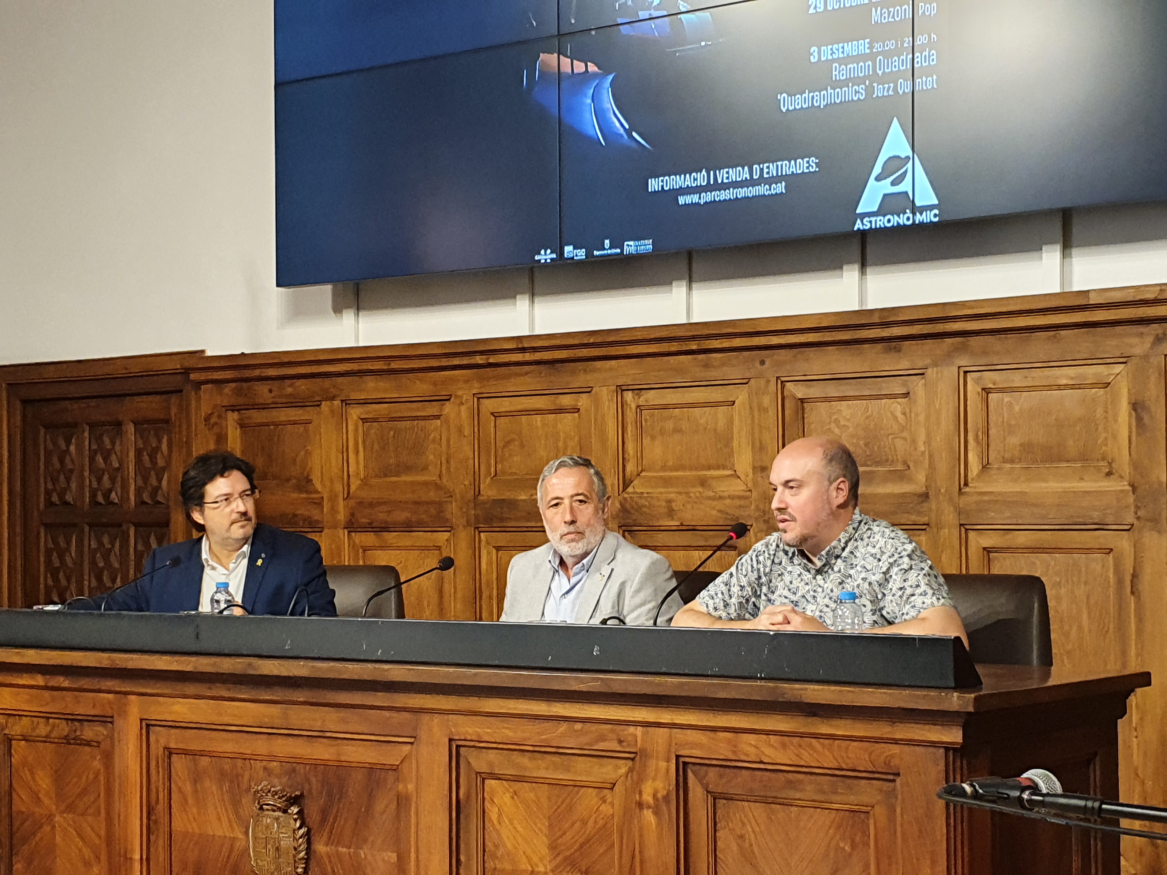 El Parc Astronòmic del Montsec acollirà, de juliol a desembre, un nou cicle de concerts ‘Música Sota les Estrelles’, una activitat que combina espectacles musicals d’artistes catalans amb una visita a l’Astronòmic amb observació del cel. El secretari de Territori i Mobilitat, Isidre Gavín; el director del Parc Astronòmic, Salvador J. Ribas, i el director de l’Institut d’Estudis Ilerdencs, Joan Josep Ardanuy, han presentat avui els noms dels grups i cantautors que participaran a l’edició d’enguany, la 12a, amb la principal novetat que s’amplia el nombre de concerts de quatre a cinc. La passada edició el cicle va comptar amb més de 400 espectadors i va esgotar les entrades els quatre dies de concert.