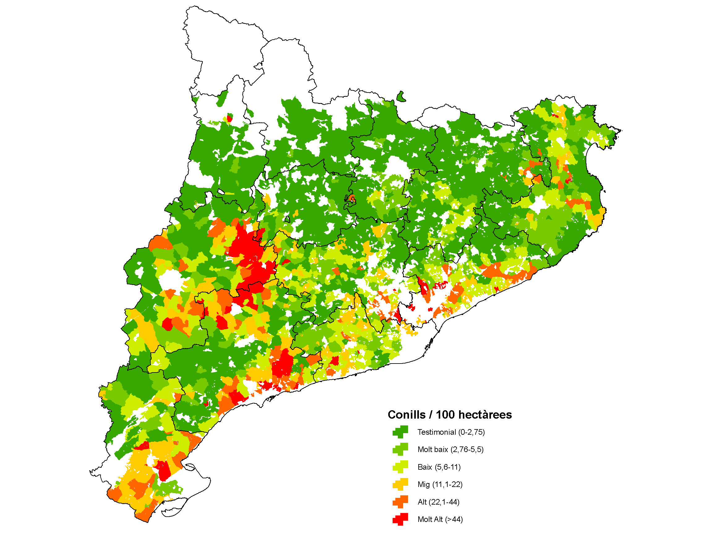 El Departament de Medi Ambient i Habitatge ha elaborat una diagnosi per poder tenir la informació bàsica sobre la problemàtica que generen els conills de bosc als conreus. Els resultats d’aquest treball permetran establir una planificació de mesures de control i prevenció que reduiran les conseqüències econòmiques i socials dels danys.