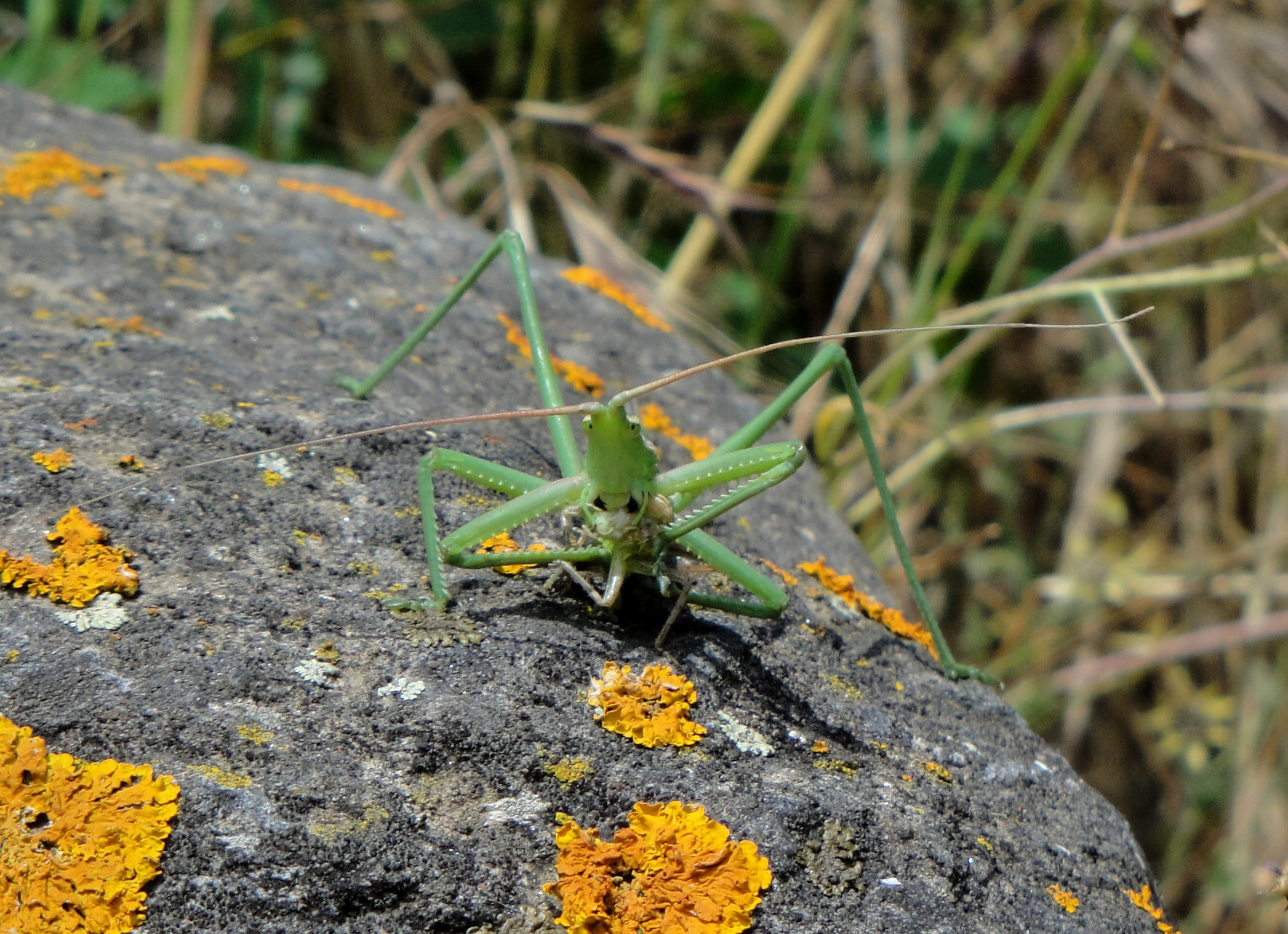 Tècnics del Departament de Medi Ambient i Habitatge han detectat aquest any la presència al Parc natural del cap de Creus d’un ortòpter protegit, la llagosta plegamans o llagosta saga (Saga pedo). Feia cinc anys que no es documentava la presència a Catalunya d’aquesta llagosta, de la família dels saltamartins, someretes i grills, i que es caracteritza per la seva gran mida - pot superar els 10 centímetres - i per ser de les poques llagostes carnívores.