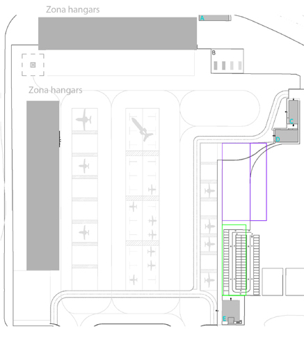 El nous hangars es distribuiran perifèricament per la zona de la plataforma d’estacionament d’aeronaus d’acord amb el que s’ha previst. El disseny dels hangars haurà de ser uniforme al costat aire de l’aeròdrom, per tal que el conjunt resulti integrat en l’entorn i es minimitzi l’impacte ambiental.