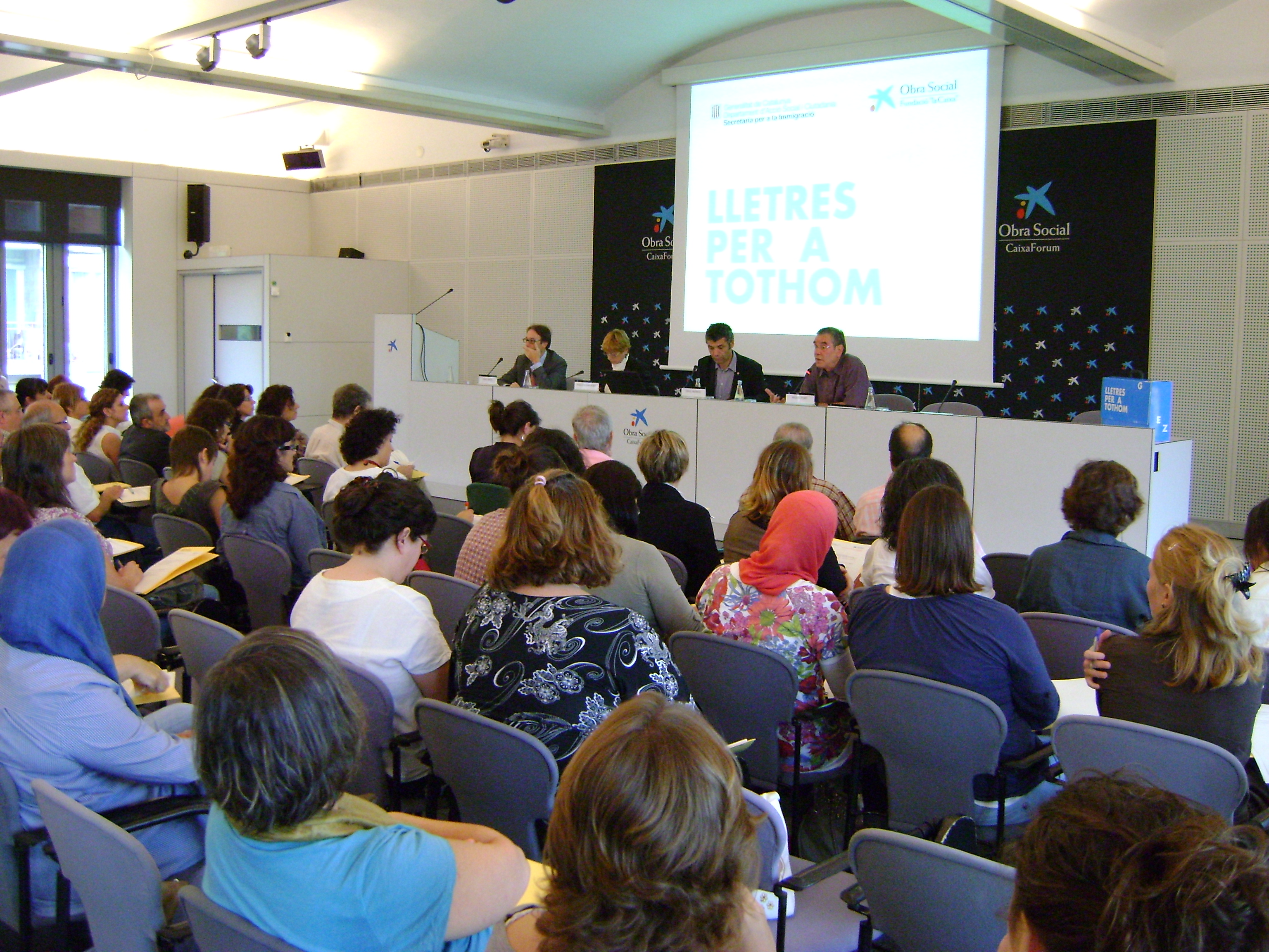 El Departament d’Acció Social i Ciutadania, la Fundació “la Caixa” i la Federació d’Associacions Culturals i Educatives de Persones Adultes (FACEPA) han presentat aquest matí a Barcelona “Lletres per a tothom”: un nou programa d’abast nacional que té per màxim objectiu promoure l’alfabetització en català de persones adultes d’origen estranger. La presentació s’ha fet en el marc d’una jornada organitzada al CaixaForum adreçada a professionals i persones voluntàries que fan alfabetització d’adults.