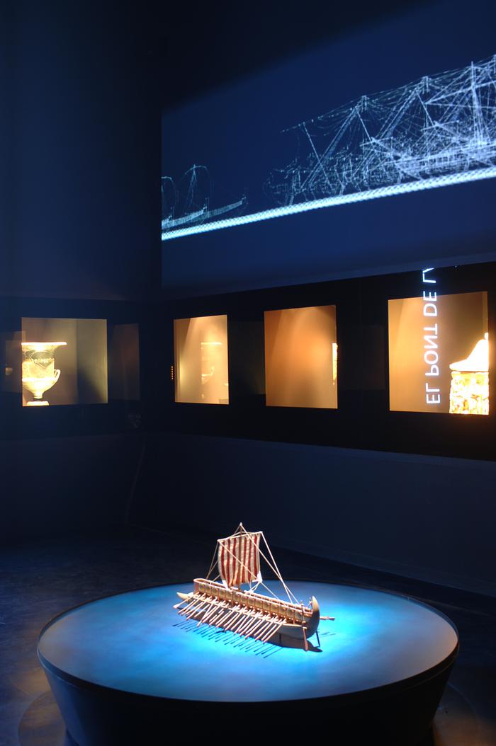 - El pont de la mar blava (dues sales): en aquesta sala es poden veure peces fins ara no exposades, entre les quals hi ha diversos vasos grecs, alguns d’etruscos i una peça egípcia. La sala és fosca, amb un cel estelat, i la única companyia d’un vaixell fenici al centre de la sala, presentat com si fos al mig del mar.