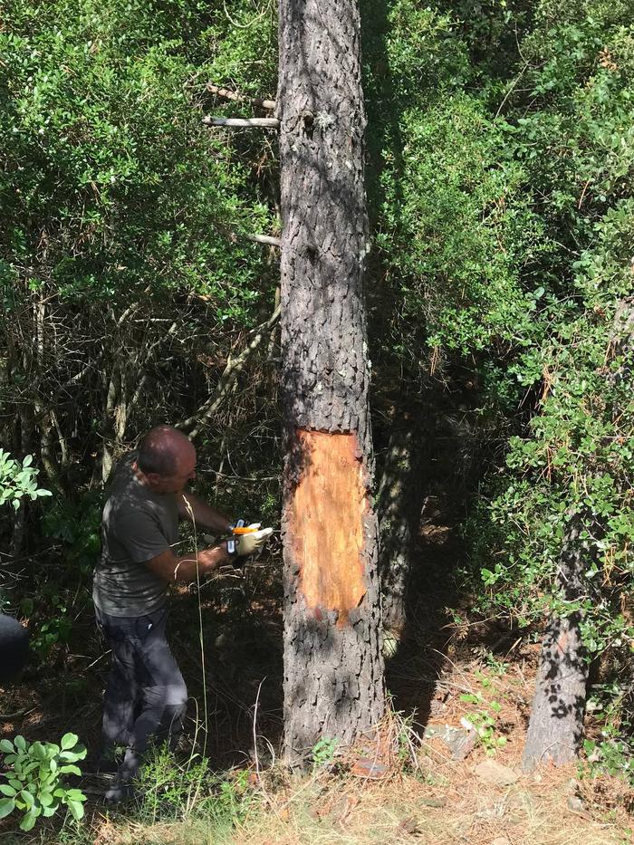 D’altra banda, tenint en compte que en els darrers anys hi ha hagut episodis semblants com ara les afectacions sobre les pinedes de pi pinyer al Maresme o, sobretot, sobre aquesta mateixa espècie a la Selva, on les experiències per evitar la plaga deixant en peu els arbres no afectats no van ser positives (es van haver de tallar posteriorment), es conclou que l’opció més factible és tallar els arbres afectats en l’època oportuna segons les diferents espècies de perforadors perquè facin d’arbres esquer, però retirar-los o trossejar-los en el moment oportú per evitar que siguin focus de noves afectacions.