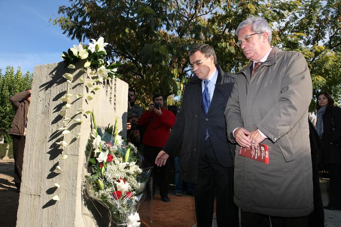 El conseller d’Interior, Relacions Institucionals i Participació, Joan Saura, i l’alcalde de Lleida, Àngel Ros, han presidit avui l’acte de dignificació de les fosses comunes del cementiri de Lleida i l’homenatge a totes les víctimes de la Guerra Civil. Després d’un recorregut per les fosses del cementiri, ara senyalitzades i dignificades gràcies a un projecte de l’ajuntament i el Memorial Democràtic de la Generalitat, tots dos han fet una ofrena floral i un parlament