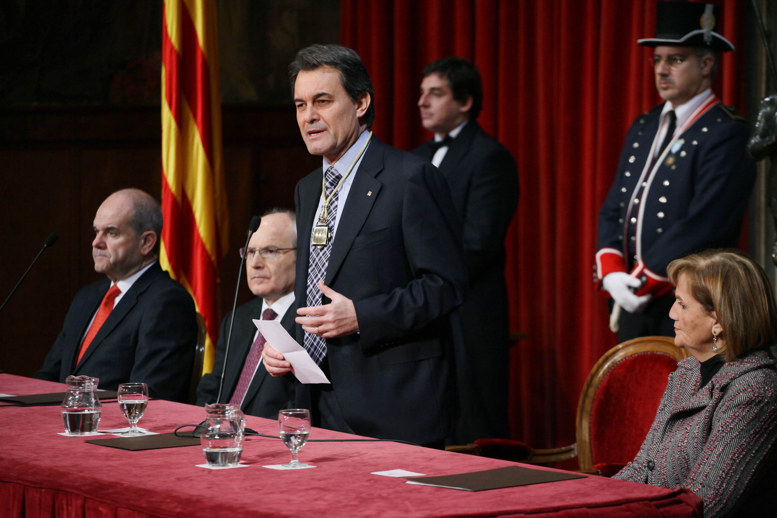Voldria que les meves primeres paraules fossin d’agraïment al president José Montilla. Per allò que en podríem dir l’impecable traspàs de poders que s’està produint entre el govern anterior i el nou govern, entre els dos presidents, que és un signe, com ell mateix deia en la seva intervenció, no només de continuïtat, sinó a més a més de plena normalitat institucional, en un moment en què, a més a més, el nostre país necessita aquest tipus de gestos de continuïtat i de normalitat. Per tant, gràcies president José Montilla per aquesta actitud que també és una actitud de servei aquests dies al nostre país.