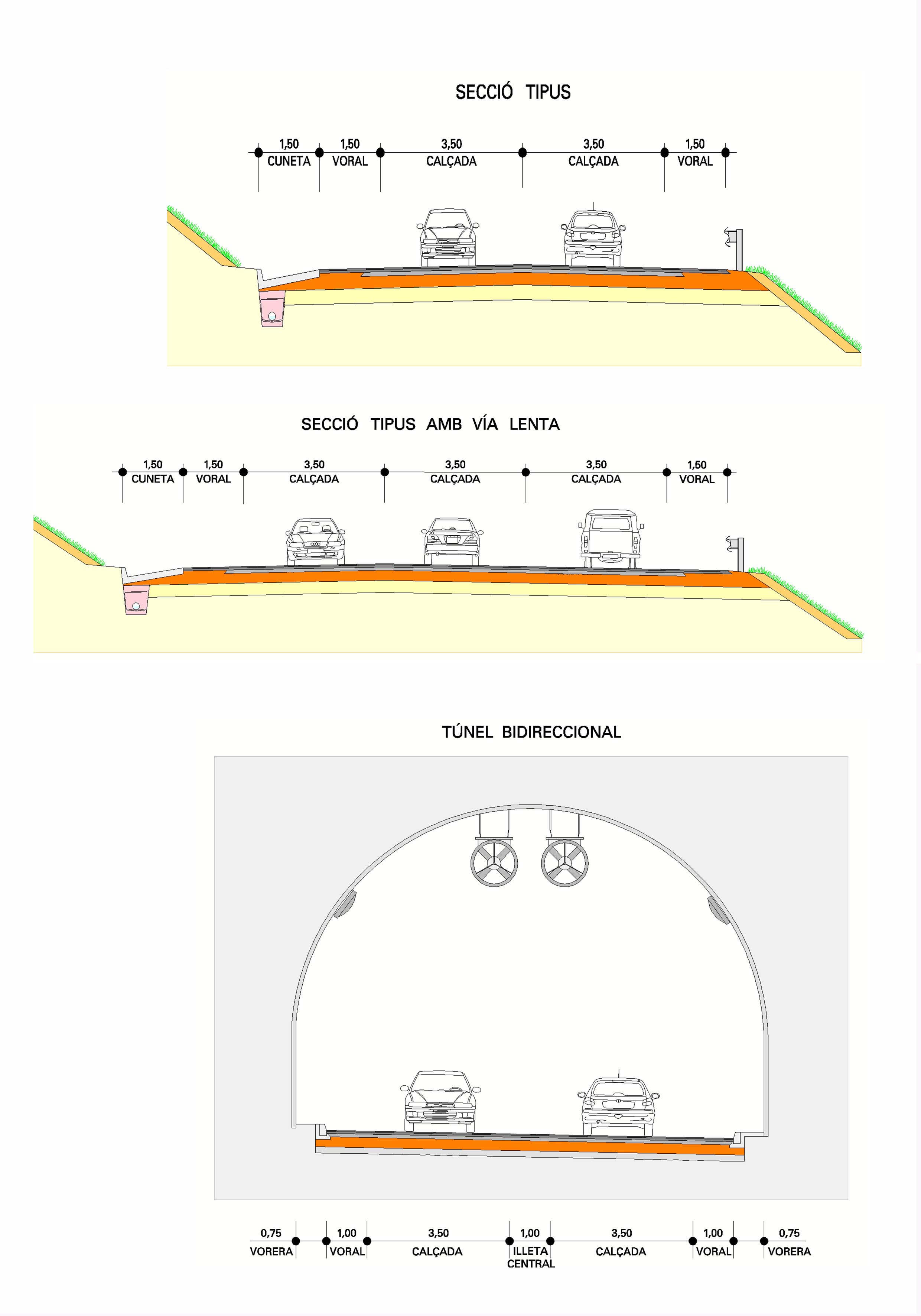 Les alternatives contemplen l’eixamplament i millora de traçat de les carreteres sobre les que se situen, així com la construcció d’un túnel sota el Coll de Comiols. La millora de traçat haurà d’assolir velocitat específica 60 km/h i la secció transversal formada per 2 carrils de 3,5 metres d’amplada i vorals d’1,5 metres, amb vies lentes en els trams on es presentin rampes pronunciades i contínues.