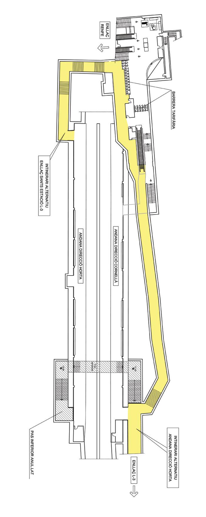 El projecte preveu construir dos ascensors, un per andana, per facilitar el pas entre aquestes a les PMR que no poden utilitzar l’actual pas sota les vies. La complexitat de l’obra obliga a tallar el passadís existent entre andanes per tal de poder realitzar amb garanties d’execució i seguretat l’ampliació d’aquest i l’obra associada a la col·locació dels ascensors. A més, s’aprofitarà el tall del passadís per realitzar un nou pou de bombes corresponent a la instal·lació de drenatge de metro.