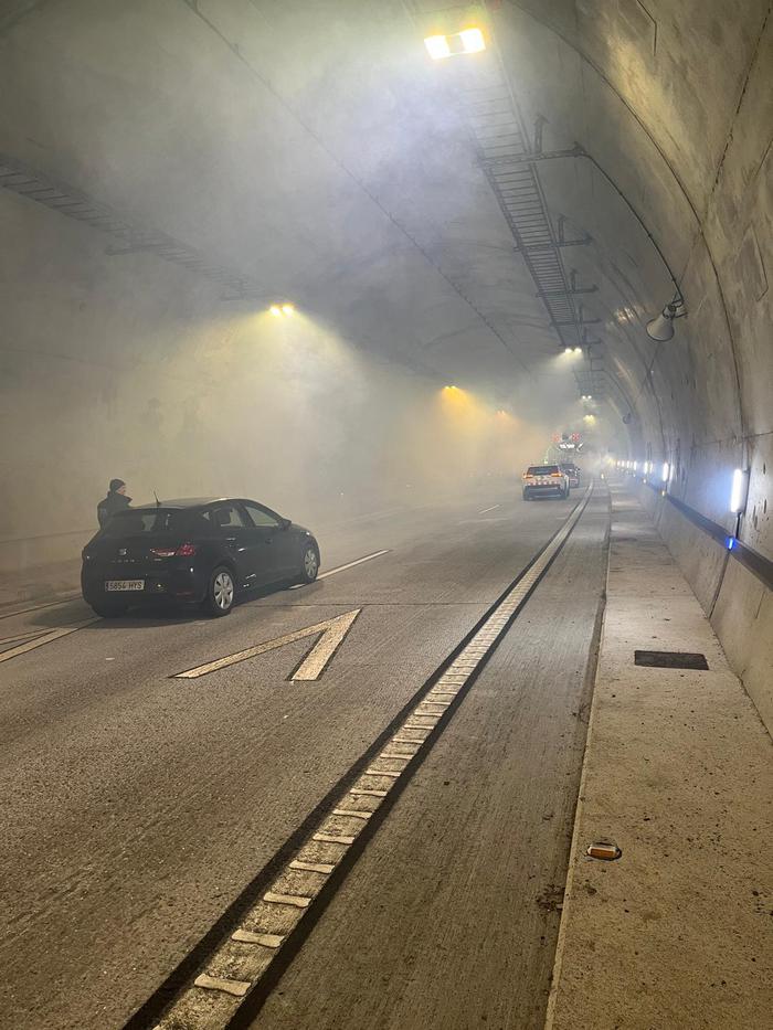 Per part de Carreteres de l’Estat el cap de l’emergència (el titular de la infraestructura) ha activat el PAU i a través del Centre de Control ha realitzat els avisos pertinents al Centre de Coordinació Operativa de Catalunya (CECAT), i també al Centre d’Atenció i Gestió de Trucades del 112, qui tot seguit ha fet les trucades als serveis d’emergències. Durant tota la jornada s’ha mantingut en contacte amb el CECAT, tal i com es contempla en el PAU homologat. Els gestors del túnel han activat l’equip de primera intervenció a lloc de l’emergència, i han posat en funcionament els sistemes de detecció d’incendis, de ventilació i extracció de fums, el sistema de megafonia, l’enllumenat d’emergència i la senyalització variable.
