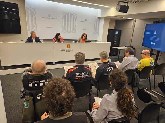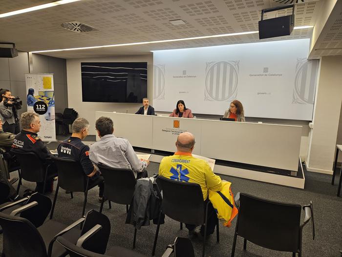 La delegada del Govern a Lleida, Núria Gil Sisó, i la directora del CAT112, Irene Fornós, han presentat aquesta tarda a la seu de la Delegació del Govern a Lleida el balanç d’activitat del telèfon d’emergències 112 a la vegueria de Lleida durant l’any 2024. També hi han assistit el director dels serveis territorials d’Interior a Lleida, Xavier Garrós, així com comandaments del CAT112, Mossos d’Esquadra, Protecció Civil de la Generalitat, Bombers de la Generalitat, Cos d’Agents Rurals i Sistema d'Emergències Mèdiques (SEM).