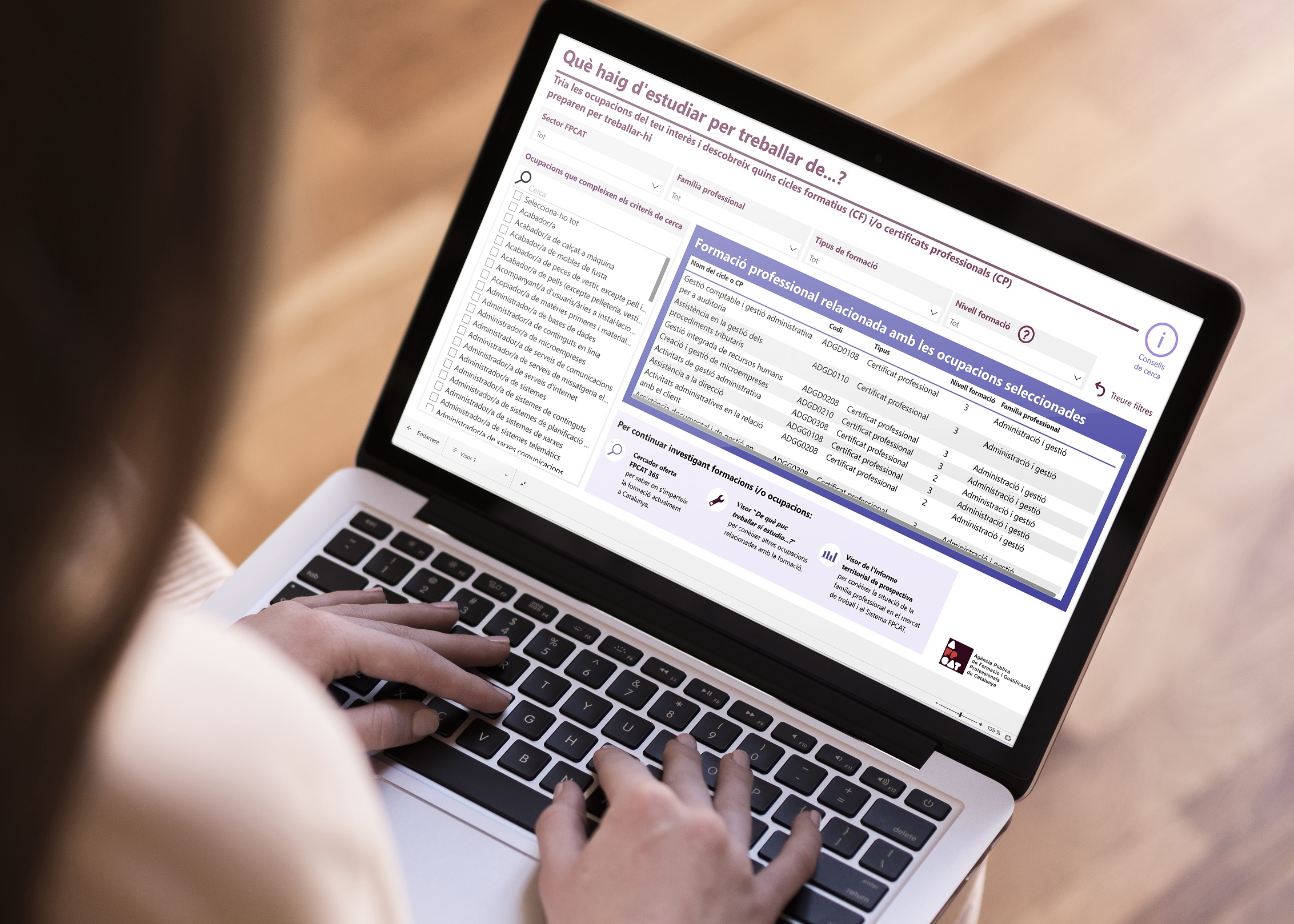 L’Agència FPCAT ha elaborat una nova eina interactiva en forma de visor que relaciona les ocupacions amb l’oferta de formació professional associada, tant de cicles com de certificats professionals.