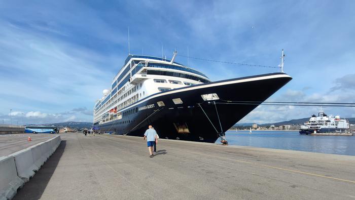 El port de Palamós ha estrenat avui la temporada de creuers 2025 a la Costa Brava amb l’Azamara Quest, al moll comercial i La Belle des Océans, al moll de ponent.